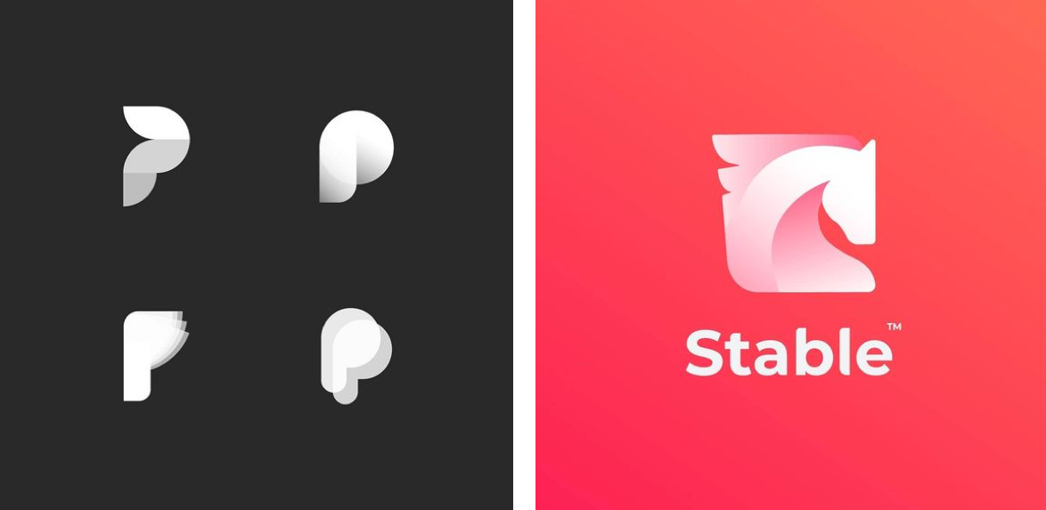 ▲这个LOGO设计,也是采用白色到透明运用,很巧妙的通过一个渐变和字母转折关联起来。