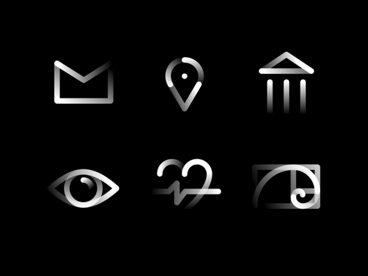 ▲这套图标系列作品,上面线型图标虽然设计很棒,但是在线型图标烂大街的今天很难让人过目不忘,设计师将新的风格改成这种面型,同时质感运用这种晶白,通过透明度的处理,显得非常有细节和层次感,每一个都很精致。