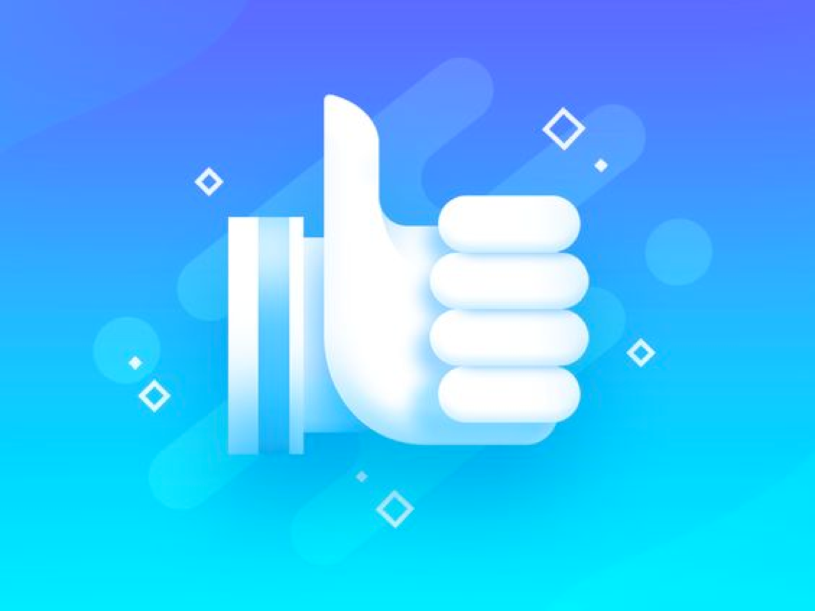 ▲这个设计就是一个晶白风格,整体视觉就是大拇指点赞的图形,这个图形整体为白色质感,但是相对于扁平的纯白色图形,这种晶白质感更有细节,层次更加丰富,同时白色的质感很好的和背景融为一体。