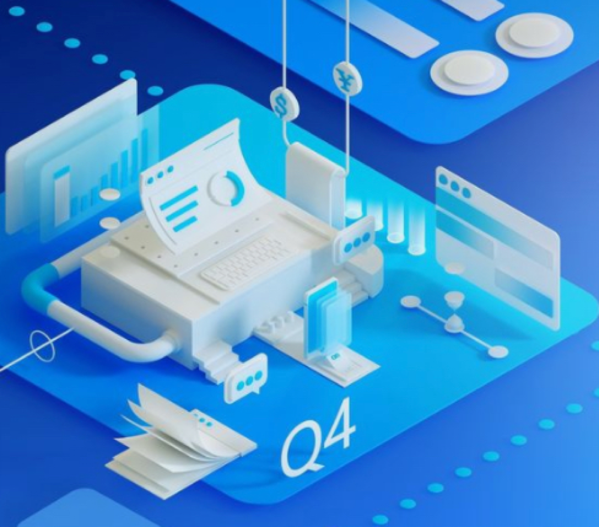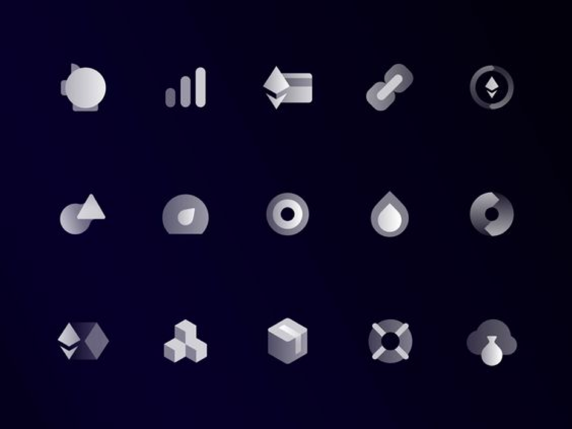 ▲此图形采用的立方块设计,整体也是从白色过度到透明,透明的白色透出深色的背景,整体呈现出高级感。