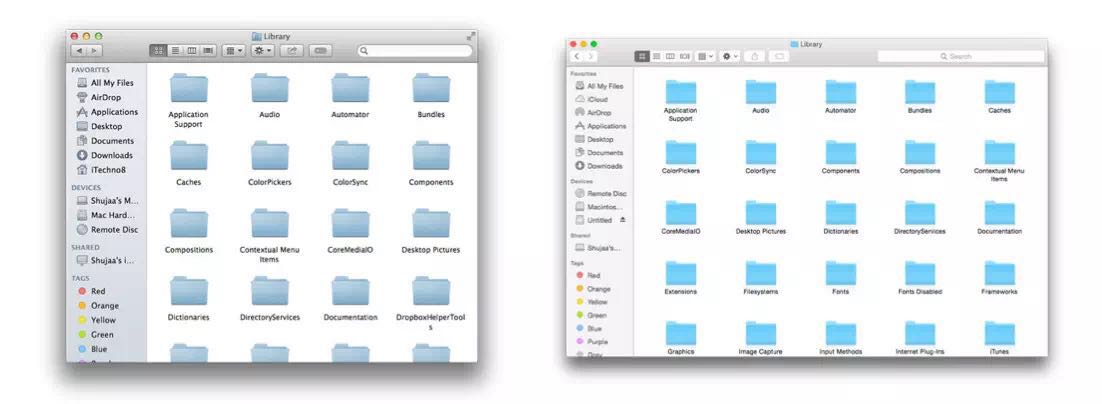 ▲ Finder的设计也是延续之前,其实“最大化”按钮已更改为“全屏”可以说苹果的设计一直都在变化,但是都有一个核心理念在延续着每一次的变化,就是白雪设计语言!