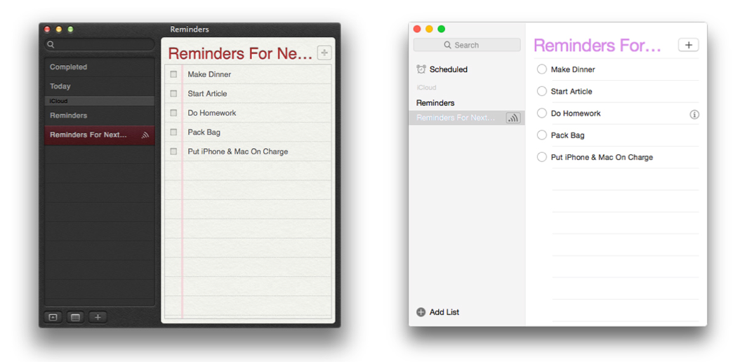 ▲ 新的备忘录,从拟物变成扁平,但是整体的设计语言的延续还是很明显的。