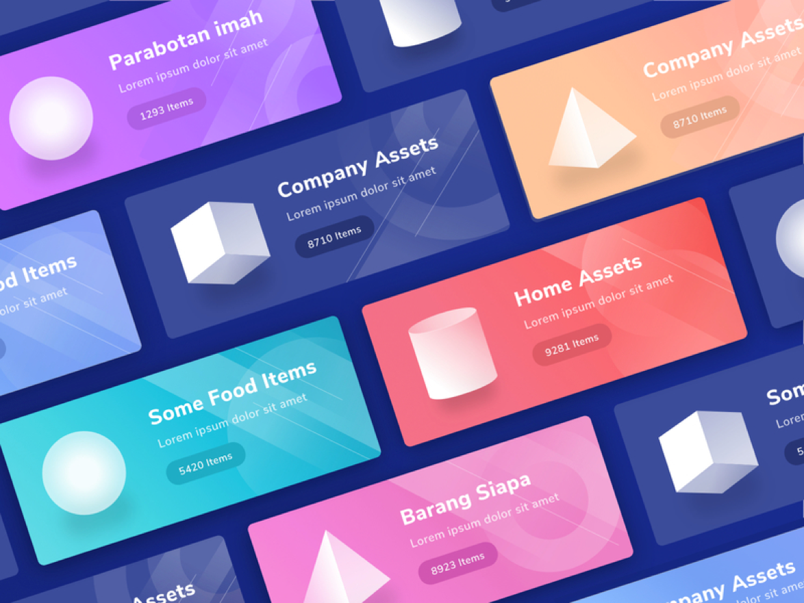 ▲这组卡片设计非常棒,作者很好的将这种晶白质感和文案融合在一起,运用几何图形的表现很好的让整个背景生动起来,同时也不影响文案阅读 。