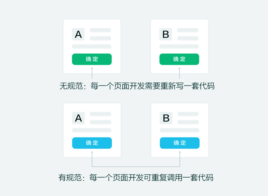 3)开发效率:统一的设计组件可以大幅度提高开发者的时间效率以及项目周期,还有就是在项目后期迭代或修改时,统一的样式可以快速修改。减轻了设计对接和开发实现的负担。