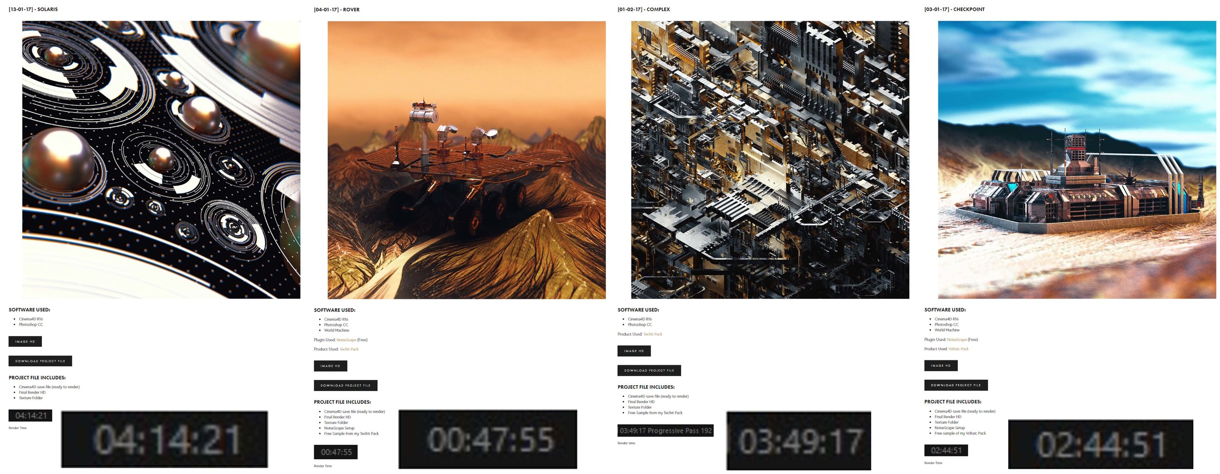 Despite my slow running machine, I ended up doing around 340 projects using the physical render engine, all part of my Everydays project I started in 2016. Apart from uploading the C4D project files on the site, I was also posting a screenshot of my final render time, just to share my waiting frustration with the community downloading my files.