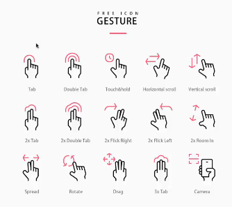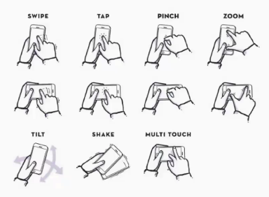 点击、双击、滑动、拖拽、放大、缩小、按压、双指点击、按住拖拽、旋转、晃动
