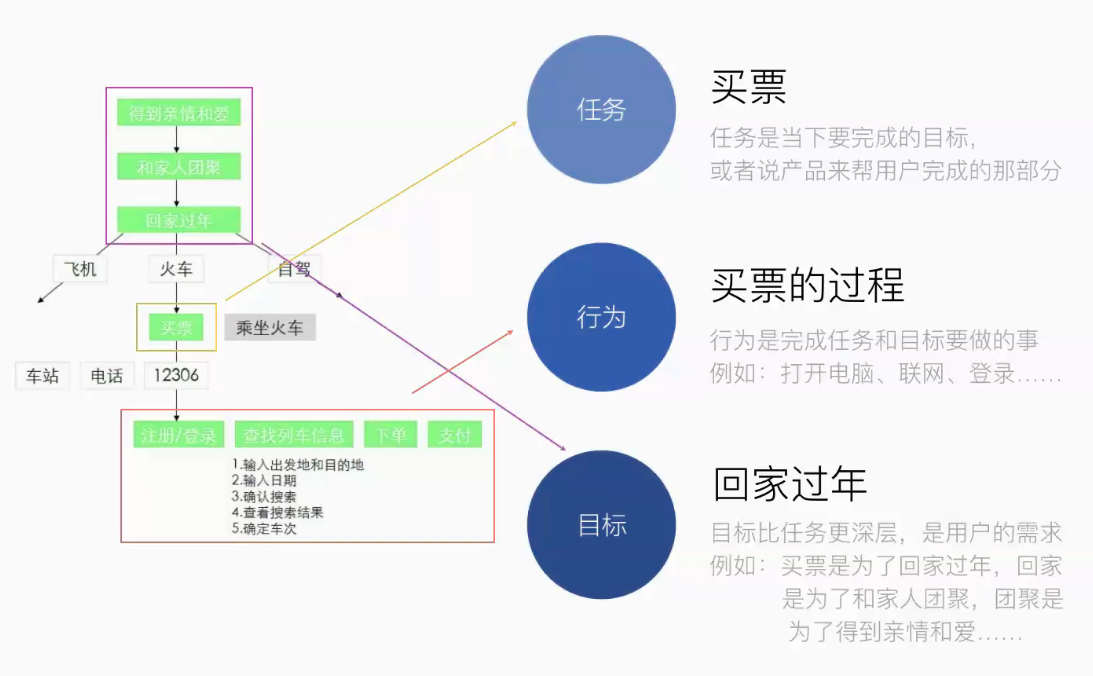 任务(what,要做什么),行为(how,怎么做),目标(why,为什么做)