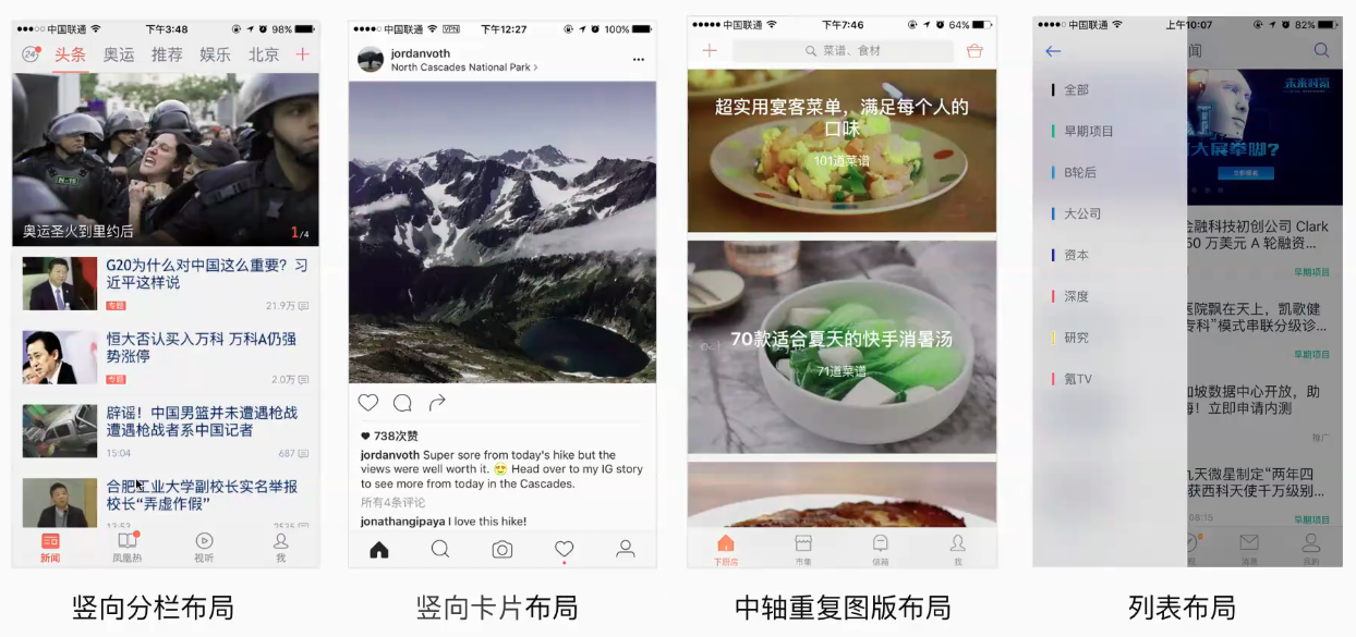 竖向分栏布局:新闻、资讯、音乐、电商、视频……