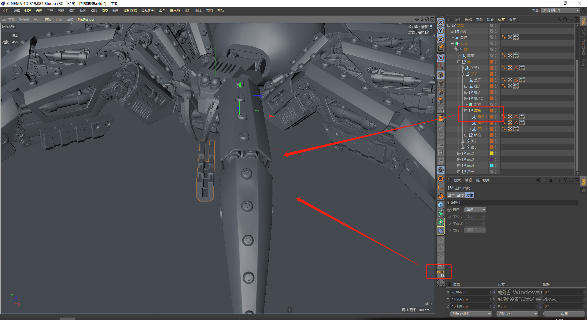 还有一个栗子,以父级对象坐标轴为对称轴,这种就可以无视世界中心随意对称啦。例如上图模型,选中的部分,明显这个地方是不关于x(y、z)轴对称,但怎么可以把他也对称到想要的地方呢。一个方法是,先在世界坐标中心做好对称,再把对称的模型转过来。但咱们已经把模型转过来,再做的时候想要使用对称工具呢,岂不是乱了。所以这需要另外一个工具,复位PSR。(复位PSR工具在选项栏角色-命令-复位PSR)先观察一下父级对象的坐标轴位置,如下图。