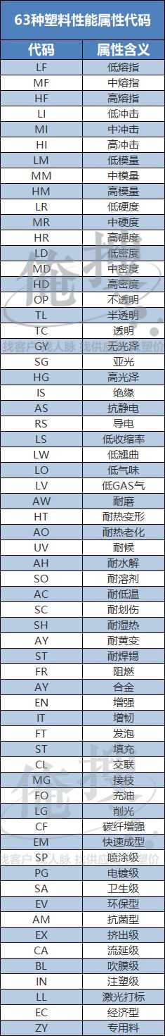 必收藏!84种塑料代码中英文对照表+52种塑料属性代码解析