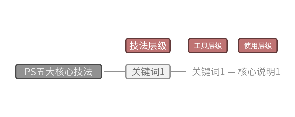我们是以学习Photoshop软件为主题,通过大量知识的输入,总结和提炼,我们可以得到这样的关键词选择——