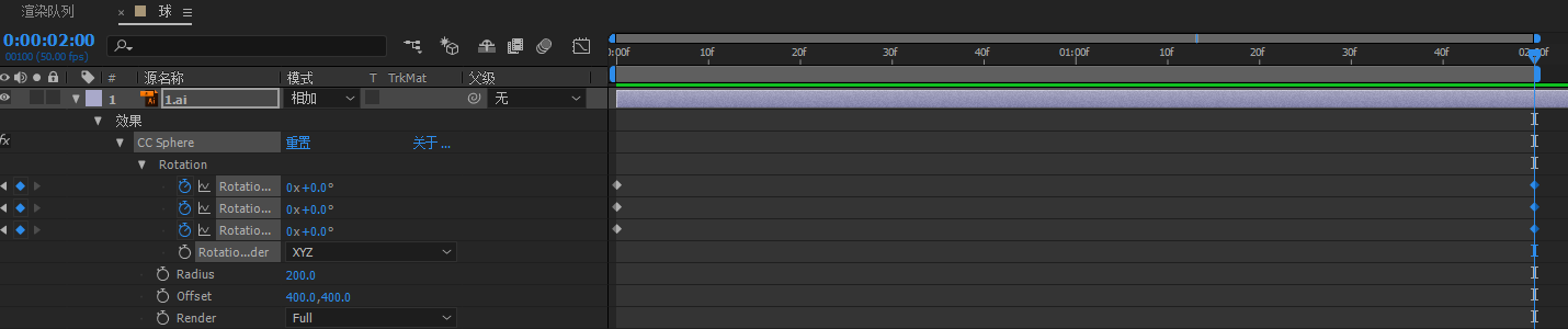 选中“1”,然后使用AE菜单栏里的“效果”—“透视”—“CC Sphere”