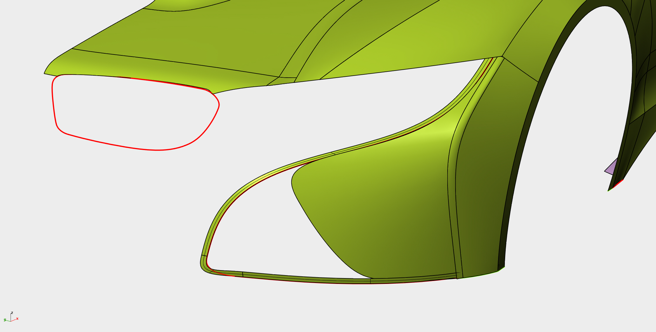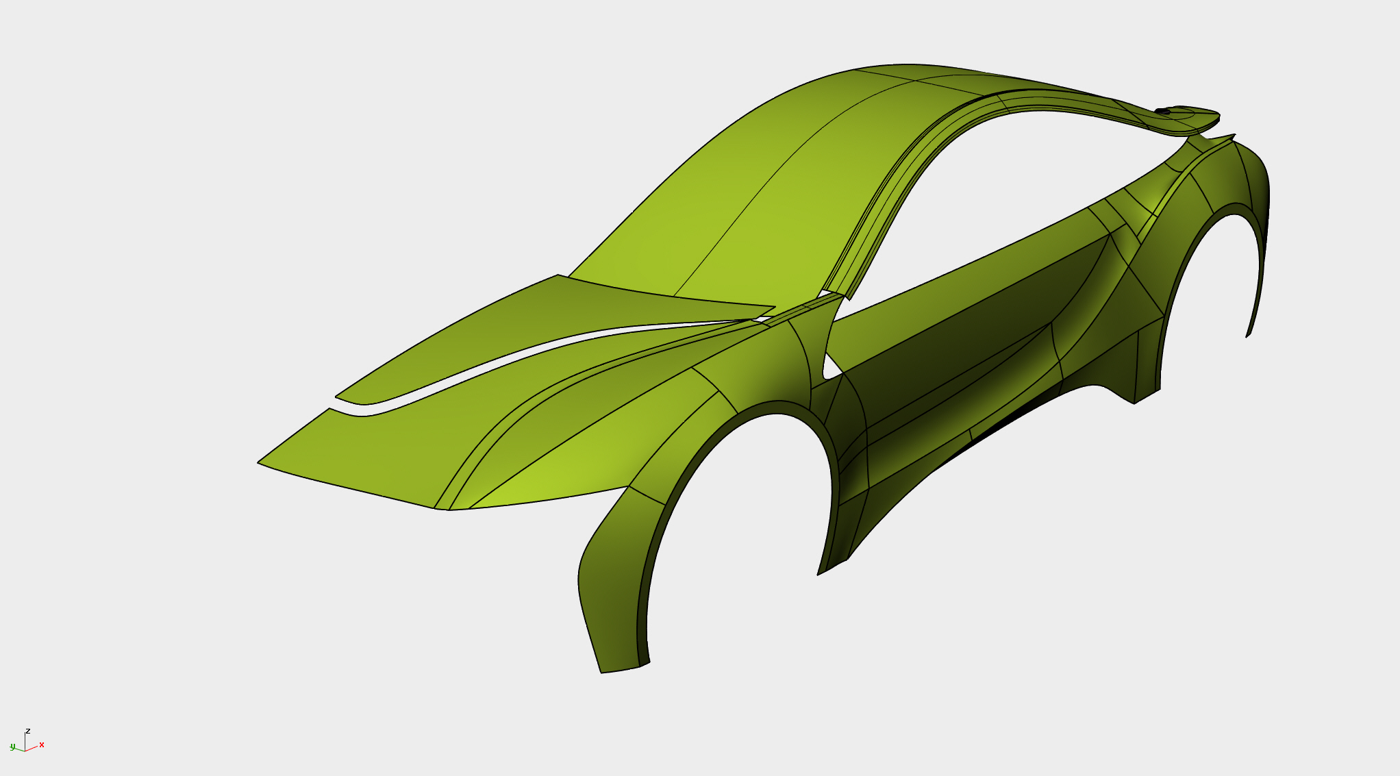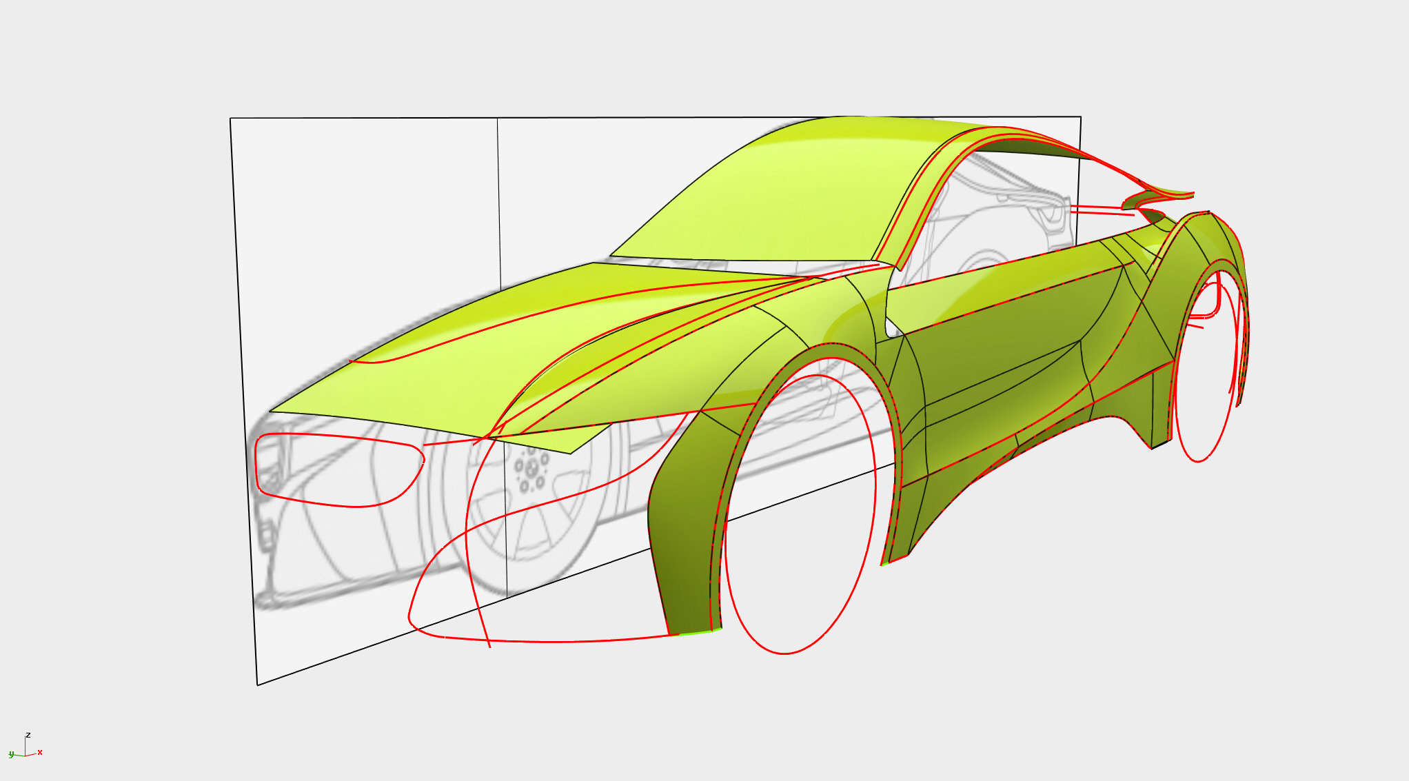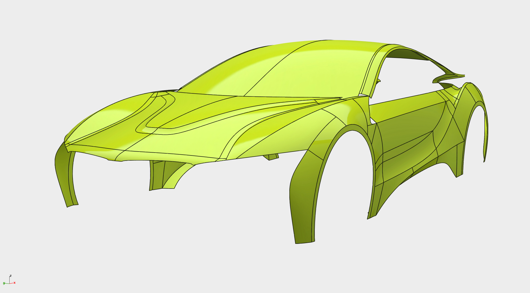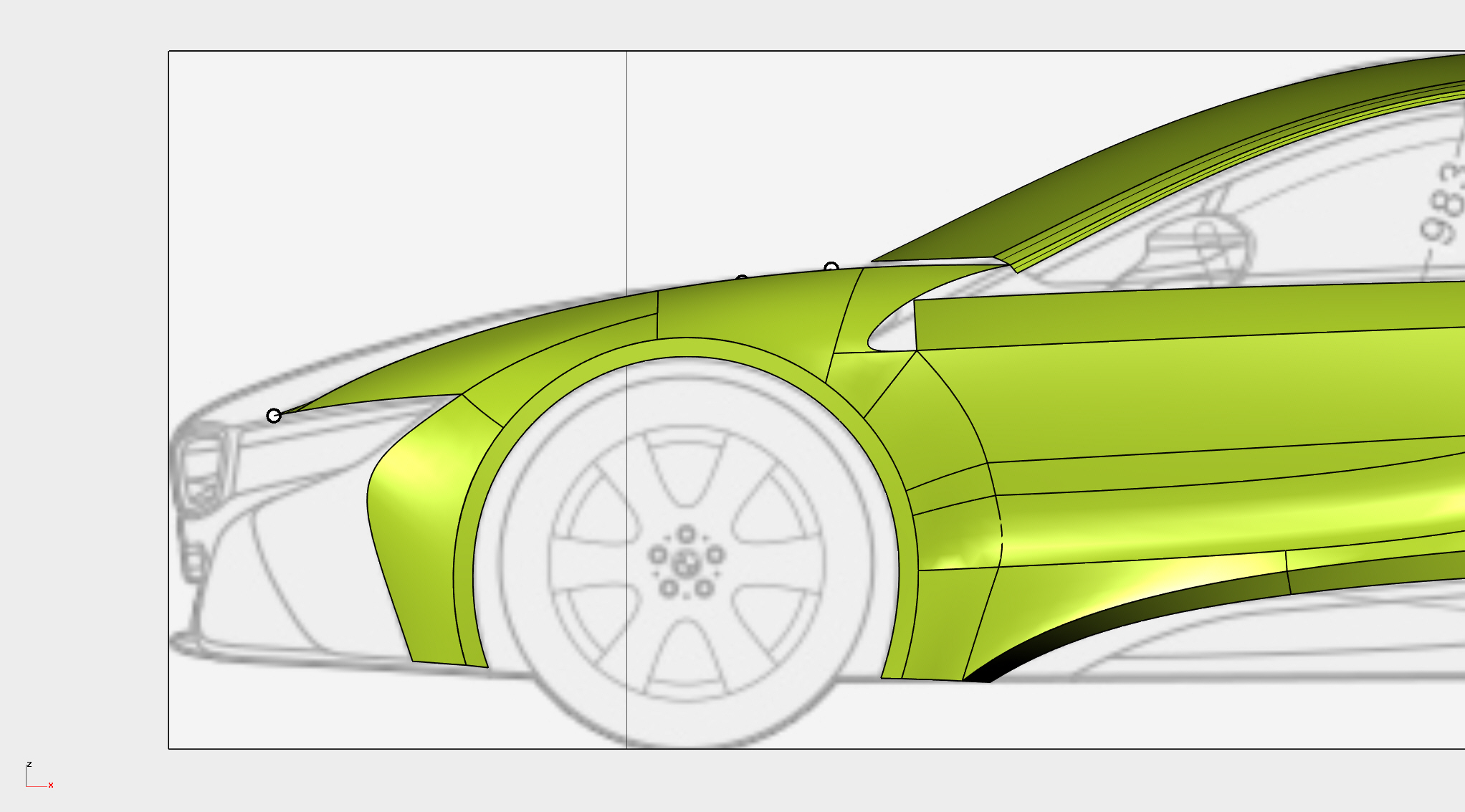 至此车身侧面及正面基础大面基本构建完成,带添加细节。