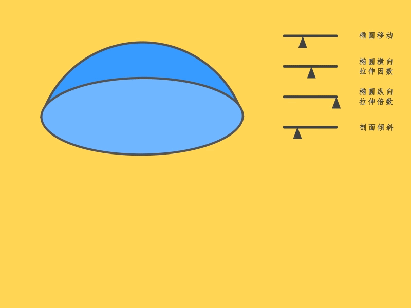 旋转的表达式解析:旋转角度=椭圆剖面倾斜滑块的数值。