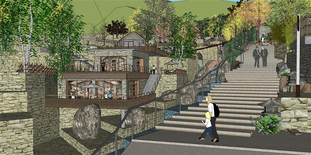 华山悠然谷,一个真正有当地特色的商业建筑群落,涵盖了“食、宿、行、游、购、娱”六种度假产品业态,是符合国际化审美标准的商业建筑群,亦是保留了陕西华阴地区传统印记与美感的文化空间。设计上将人流行为规范和原生地貌顺势结合,规划设计上充分考虑到商业整体性和通达性,整体规划自然融入“峪”、“窑洞”、“皮影”以及“道”等三秦文化元素,形成极具该地生活特质的商业旅游聚落。