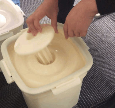 当酵素制作完后:打开整个盖子,可方便地取出酵素渣,酵素液则可留在桶中待用。如此一秒取渣,再也不用担心每次海底捞式捞渣啦~