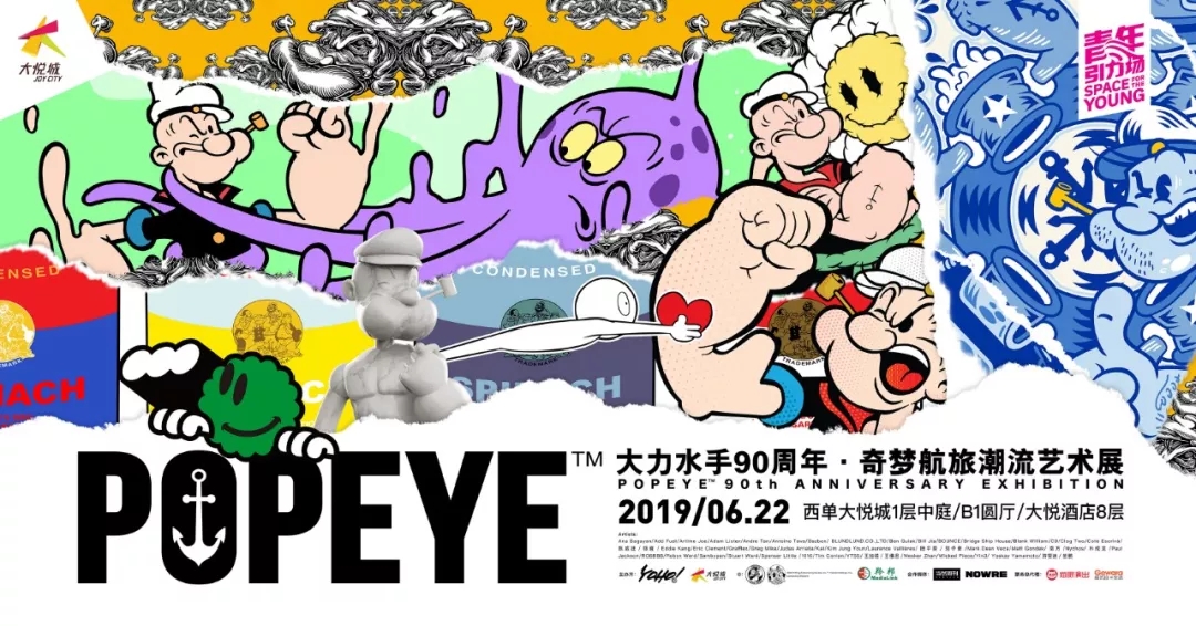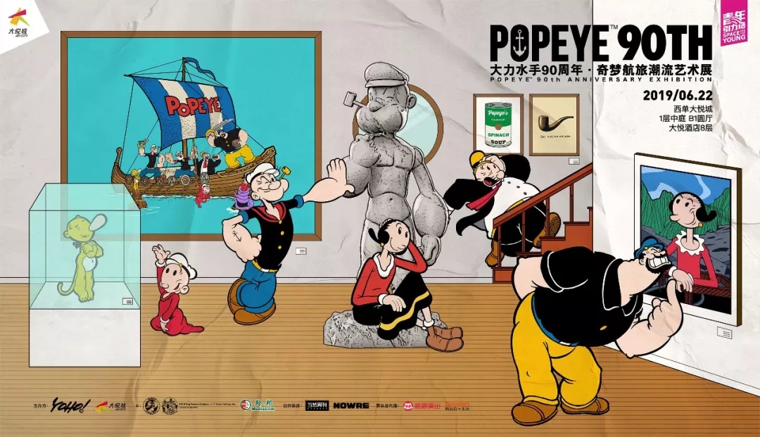 『大力水手90周年·奇梦航旅潮流艺术展』由YOHO!联合北京西单大悦城,以及大力水手版权方 King Features Syndicate, Inc., 大力水手版权代理-香港羚邦,共同呈现。