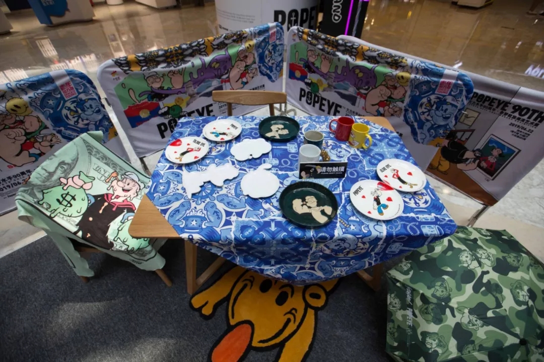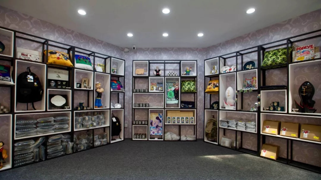 贩售区则有近百款独家展览限量纪念周边及联名潮物出售,包括艺术家联名玩具、版画、滑板等,大力水手粉丝与潮流艺术迷一定不会空手而归。