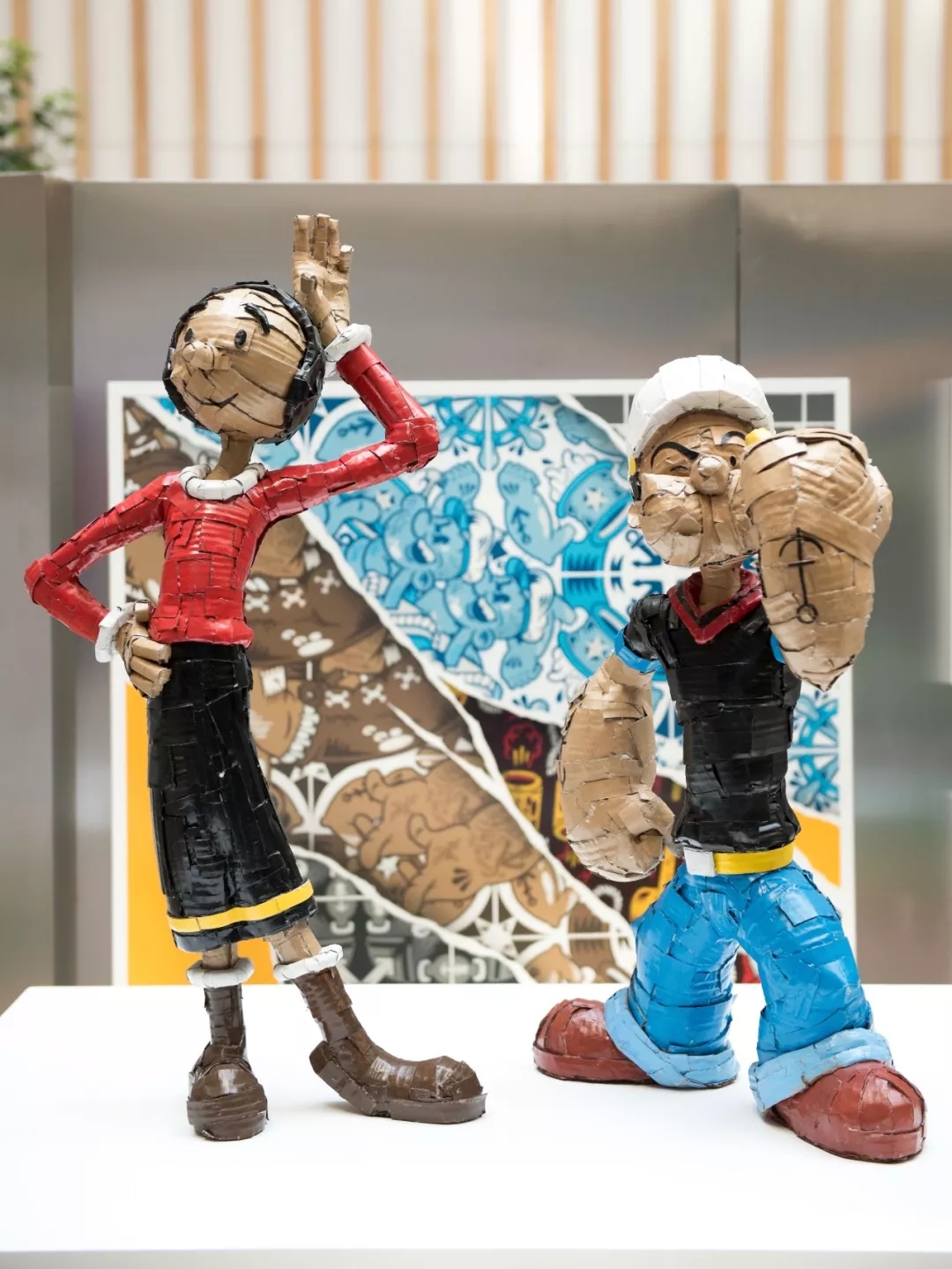 以用环保材质制作动物或卡通造型雕塑而闻名全球的加拿大艺术家Laurence Vallières,制作的大力水手和奥利佛的雕塑作品,在此次展览首次呈现,在展览现场特别吸睛。