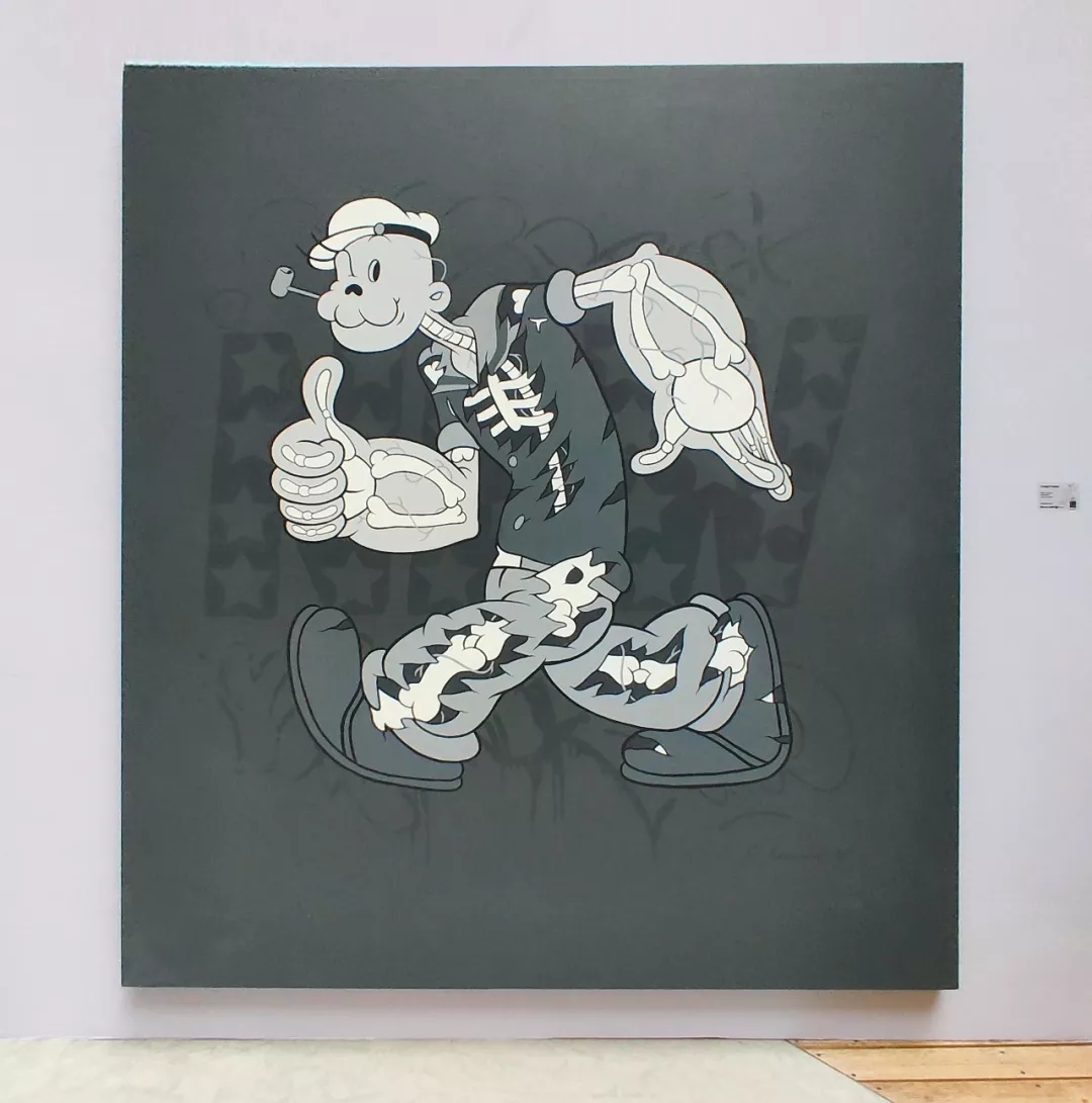 还有太多在全球潮流艺术界最炙手可热的艺术家都带来了为此次展览最新创作的作品:葡萄牙著名涂鸦艺术家与设计师Add Fuel,凭借“葡萄牙蓝”瓷砖风格的涂鸦作品获得了极大的声望,这次为大力水手展览定制了一组作品,首次亮相中国;曾与IKEA合作推出的限量玻璃雕塑作品,在印度尼西亚家喻户晓的艺术家Arkiv Vilmansa的画作也在此次现场展出;韩国年轻一代最著名的涂鸦艺术家Artime Joe,此次将带来四件最新大力水手作品;超人气西班牙潮流艺术家师Coté Escrivá,将大力水手形象融合到代表美国当代文化的卡通造型中,呈现出符号性极强、可爱、且潮味十足的作品……