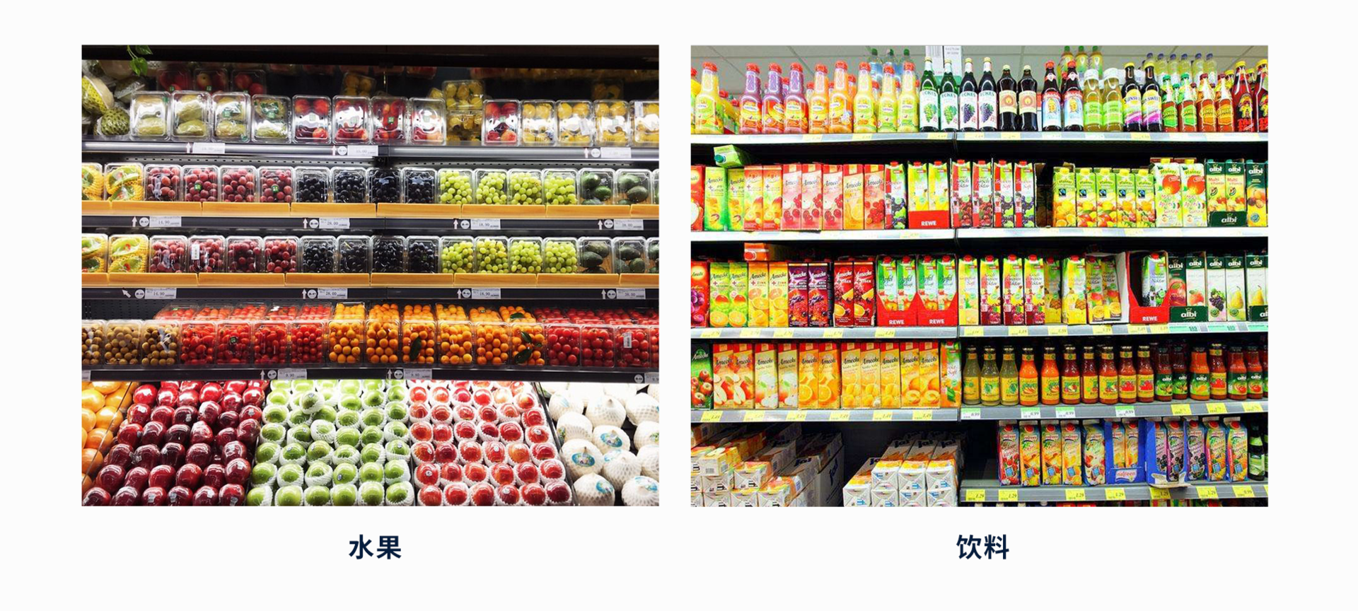 现在是网购的时代,相信大家已经很少去超市了吧。不过没关系哈,我们只是举个例子,如果你去超市留意一下,会发现超市的货架摆放其实是有规律的——同一类的商品会放在一起,同一类的商品中相似形状的饮料会摆放在一起。那么大家有没有想过为什么要这样摆呢?原因当然是为了让我们更快做出对比,做出选择,提高我们的购买效率了。