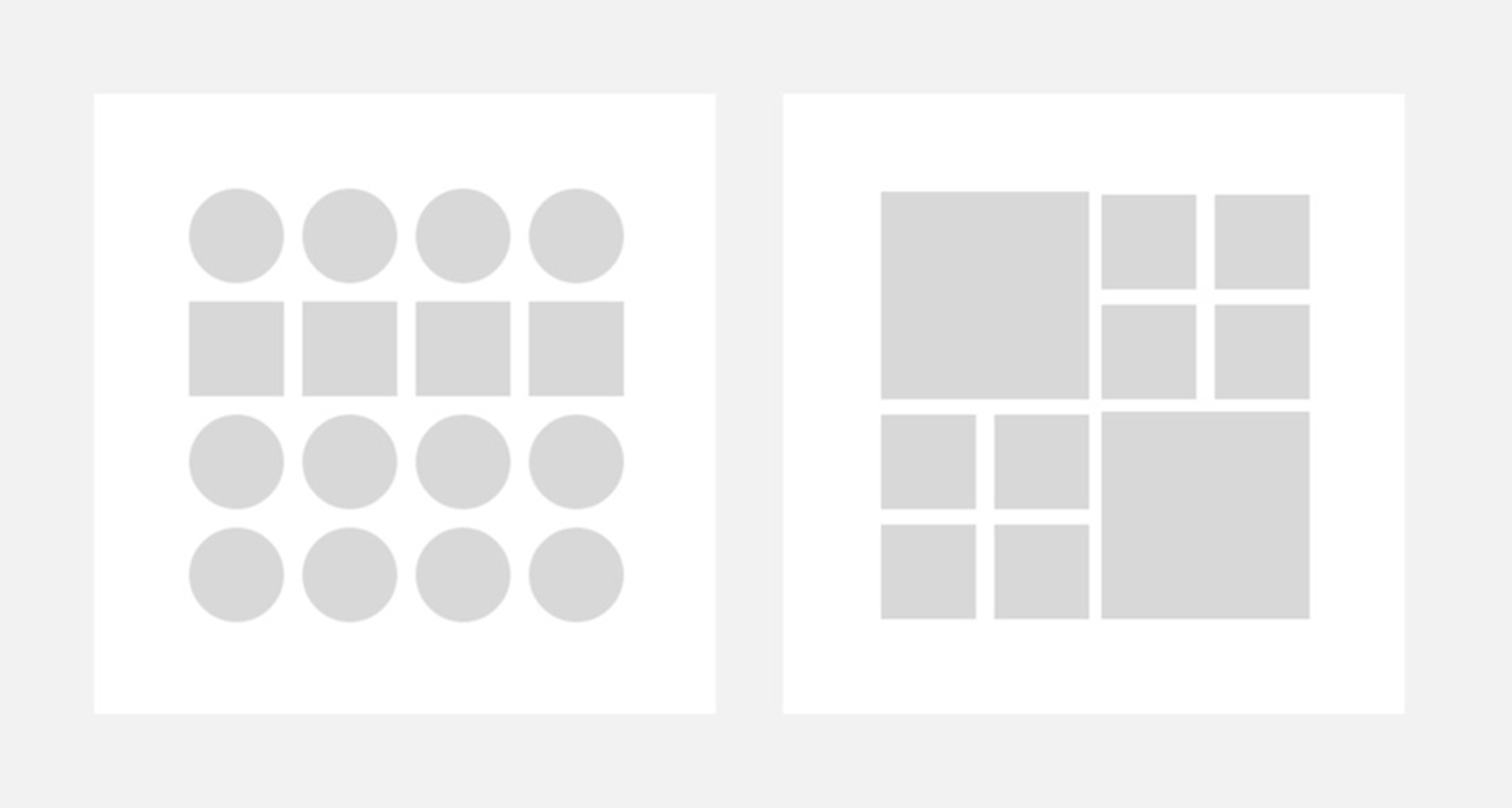 原理:我们的思维倾向于将对象视为在中心点对称,并且去均匀分割这些元素找到平衡。