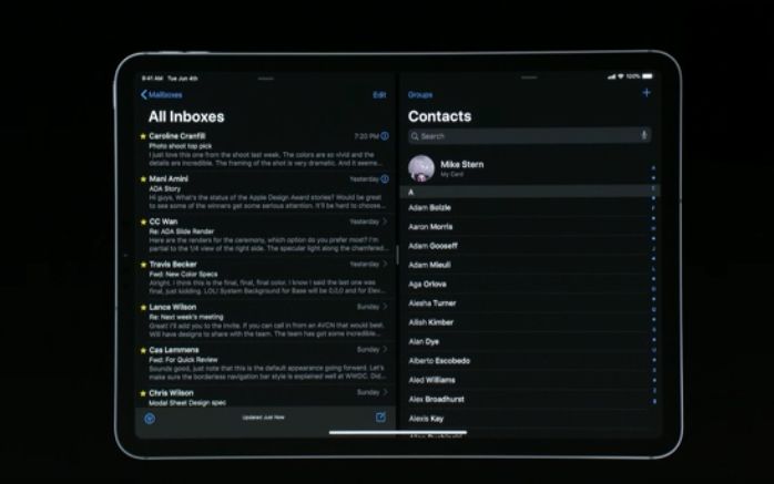 同样,在iPad的邮件应用中,侧推弹层使用了稍浅一点的颜色作为背景色。