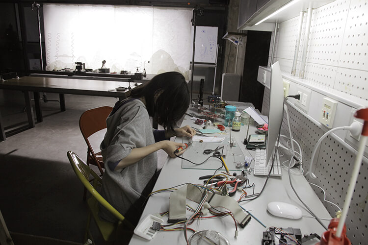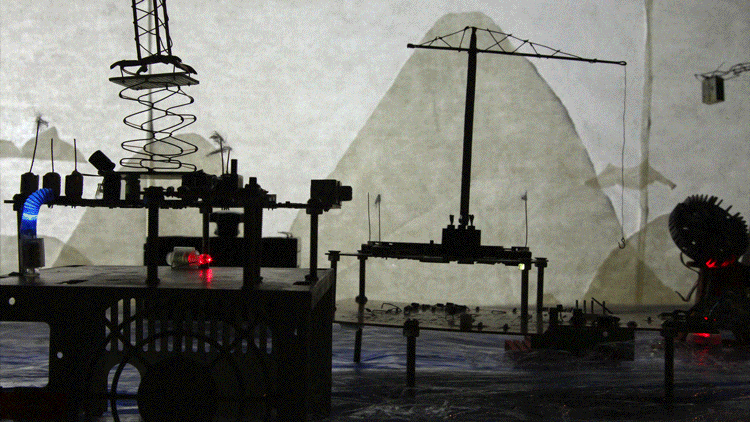 总之,材料都是身边触手可及的东西,用废旧的电脑零件做工厂,卸妆棉做工业废气,保鲜膜做浪花,包装纸做海水。定格动画拍摄对于我来说还是第一次尝试,其中还是遇到很多问题,比如,由于我做了很多工业器械,所以搭景时,一直堆放在做加法,伊莎对我说:“do things lovely,not cute”,虽然这对于我来说是一对同义词,但我知道她让我懂得取舍。