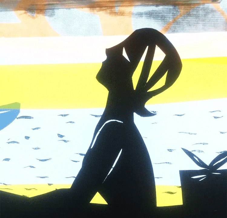 在工作坊开始之前,伊莎已经有了完整的故事脚本,名字叫《河》。故事梗概为:小女孩在奶奶去世后,想起她生前遗愿还未完成,便独自带着奶奶的骨灰出海,最终将骨灰撒向大海完成奶奶遗愿。下图海报便是出自伊莎之手。