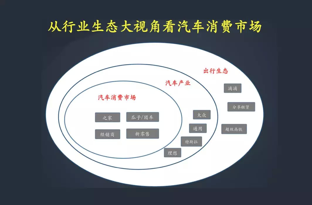 汽车之家做的是汽车消费市场,往外拓展是汽车产业,再往外拓展是出行生态,出行生态的变化最终会影响汽车消费市场。比如,人们买车的最终目的是为了出行,如果未来共享行业更发达,大家买车的需求就会减少,或者像东京这种城市,地铁足够方便、停车费足够贵,很多人就放弃买车,这样一来购车需求就会受到冲击,汽车消费市场的竞争将更加激烈。
