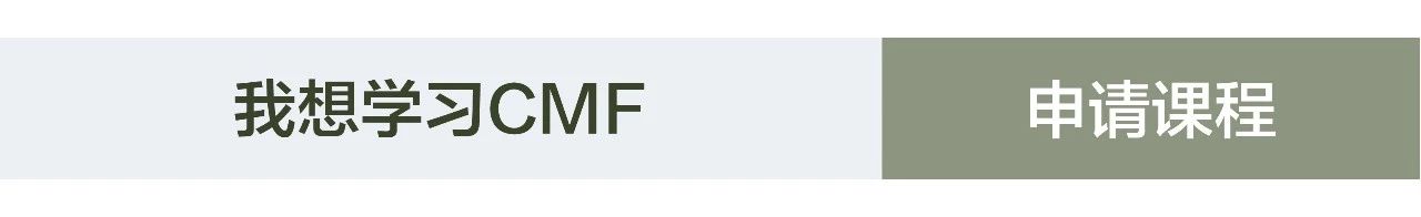 CMF作为企业深入研发实力与前瞻服务能力的重要特征,目前正处于蓬勃发展的时代,个人、企业、高等院校,都在积极关注CMF的学习、应用与教育。想要学习CMF技能,将CMF融入到企业的产品与流程,开设CMF课程,可关注由CMF设计研究院举办的CMF设计研修班,包含CMF基础课程及CMF进阶课程,详情如下: