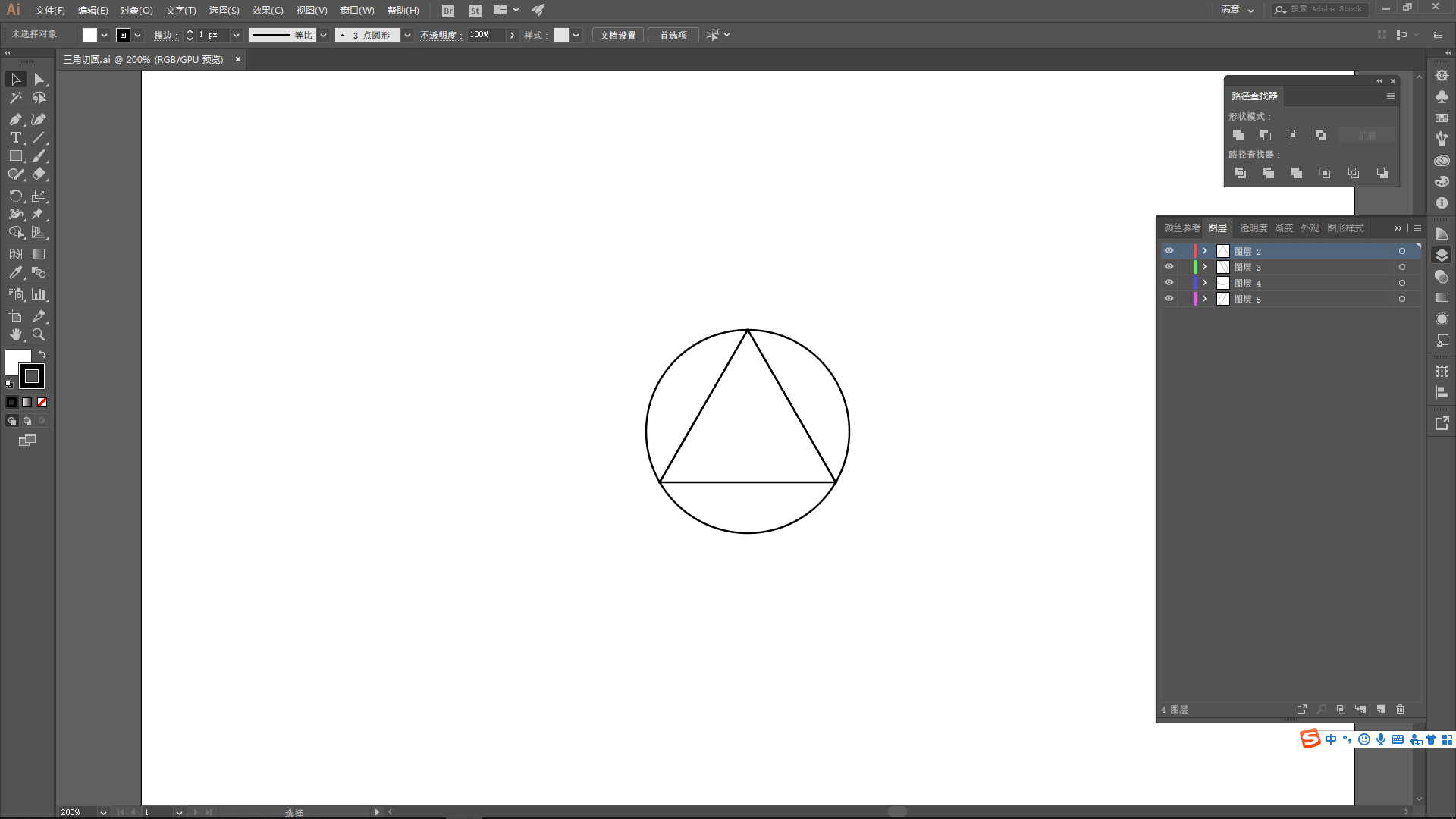 那么,第一个问题,在做之前需要做什么?首当其冲,当然是需要一个圆,但是这个圆不仅仅就是一个圆,而是一个等边三角形(内接三角形)与三个切割出来的等弧长的类似扇形的形状(这样说太麻烦啦,下文用333代替这个),详细见下图: