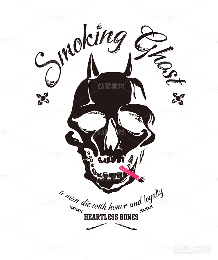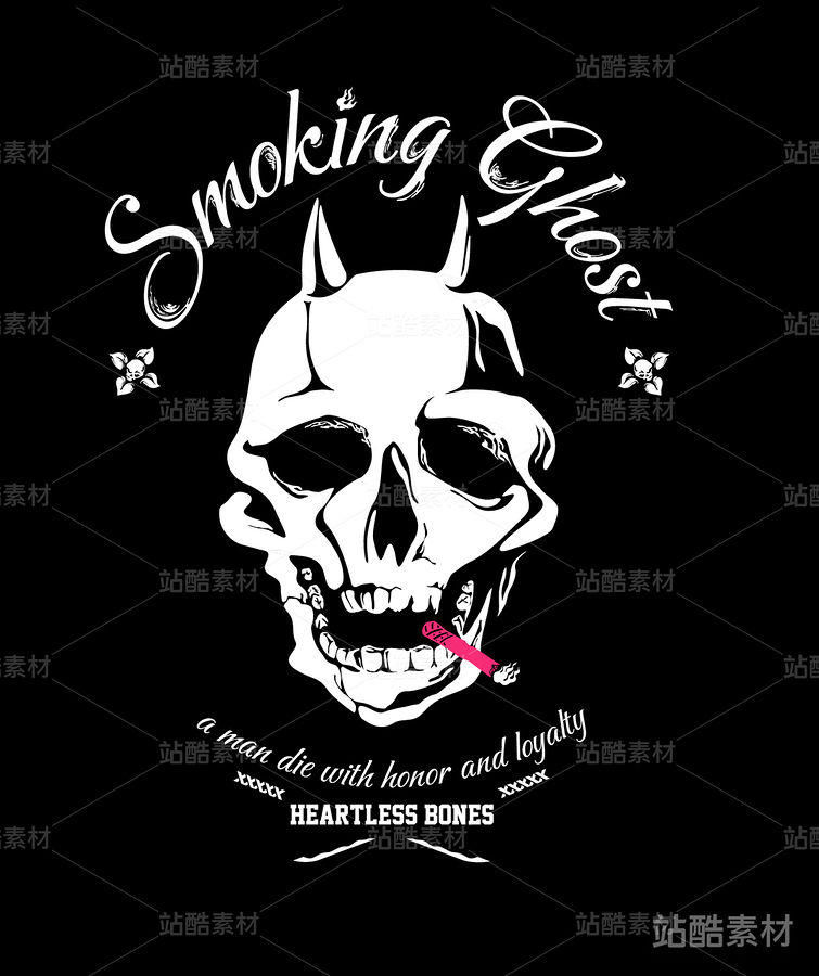 烟鬼海盗旗骷髅潮流服装印花TEE图