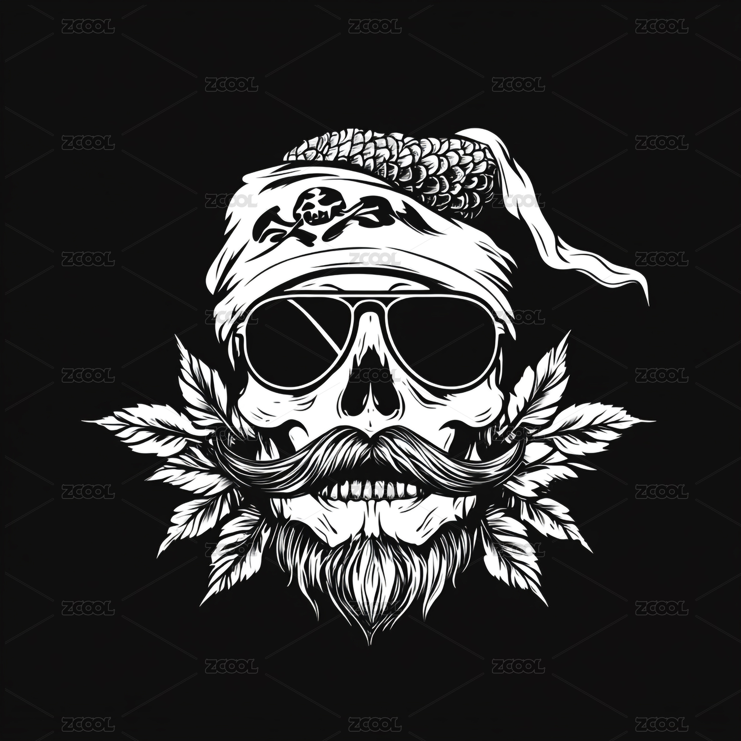 复古暗黑风格戴着头巾和墨镜的骷髅形象