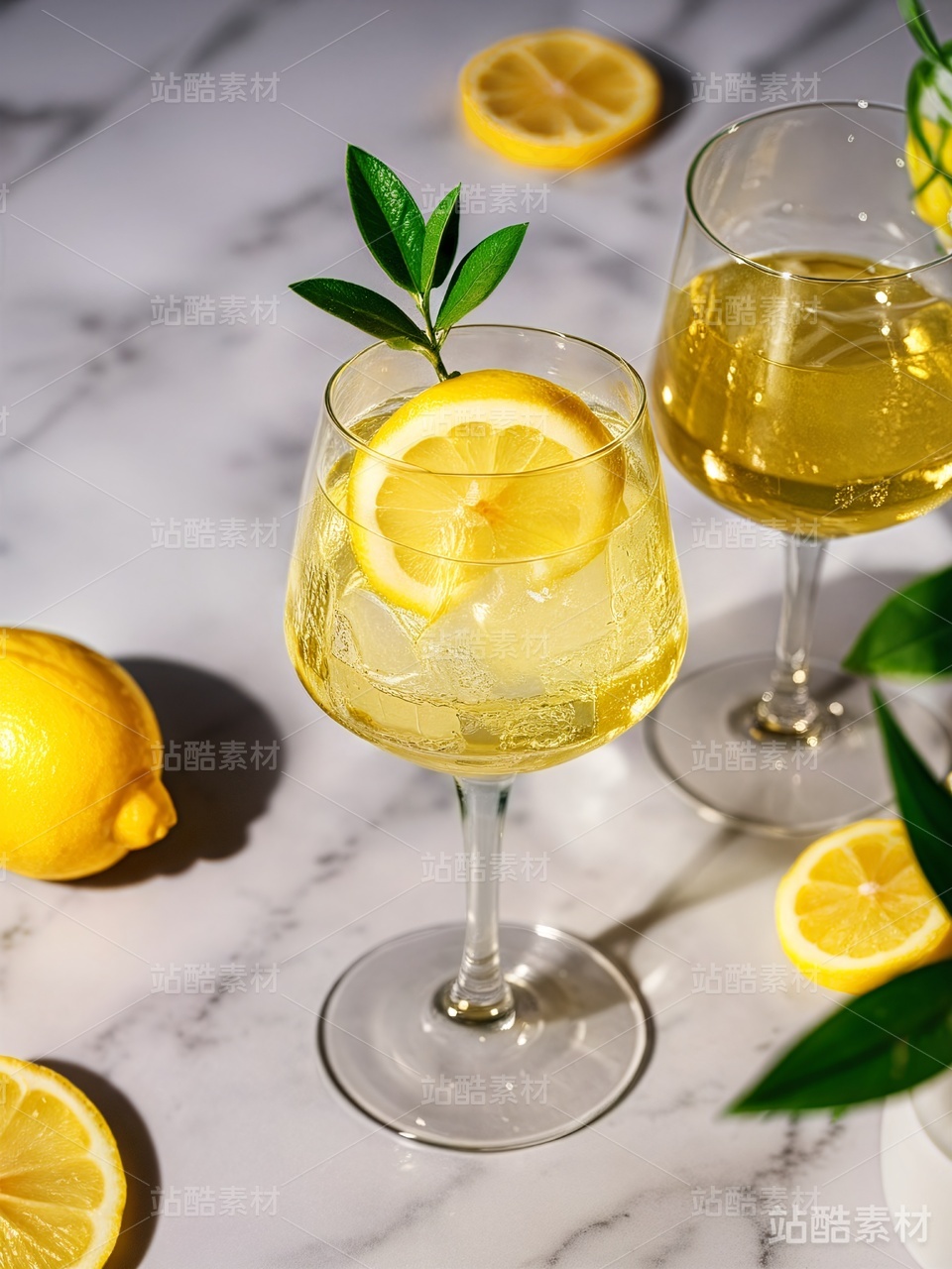 AIGC生成,清凉一夏柠檬碳酸水素材图片。