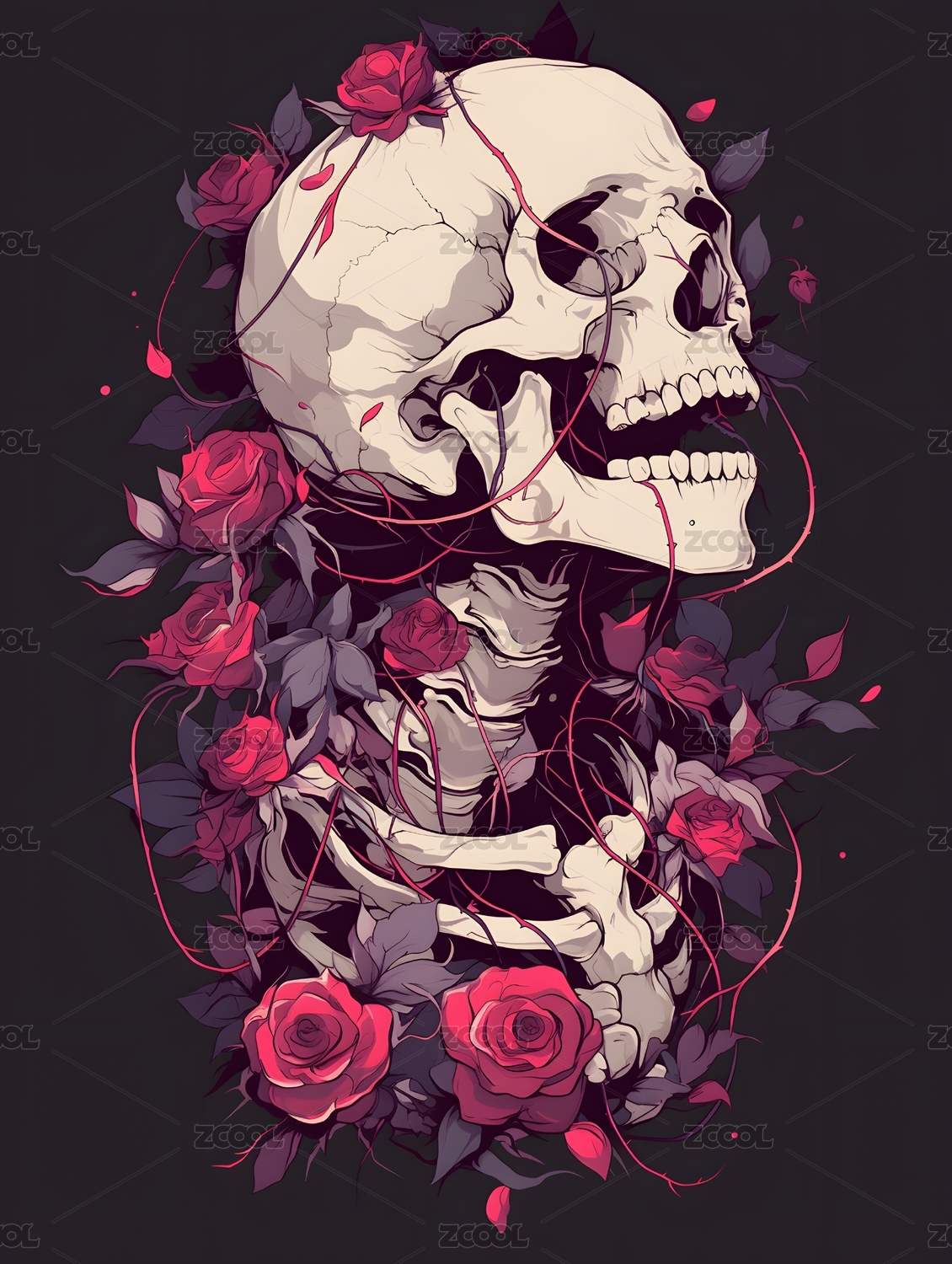 深邃的色调、精致的细节,以及复杂的纹路,哥特风格为骷髅插画注入了独特的灵魂。黑色与红色的对比,营造出一种强烈的视觉冲击,让人沉浸在神秘的氛围中。
