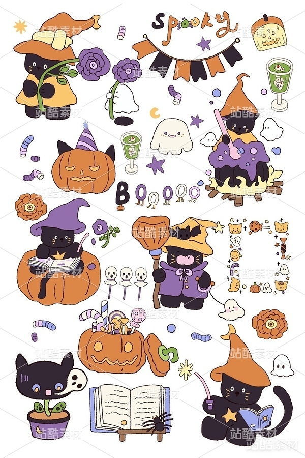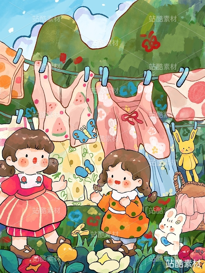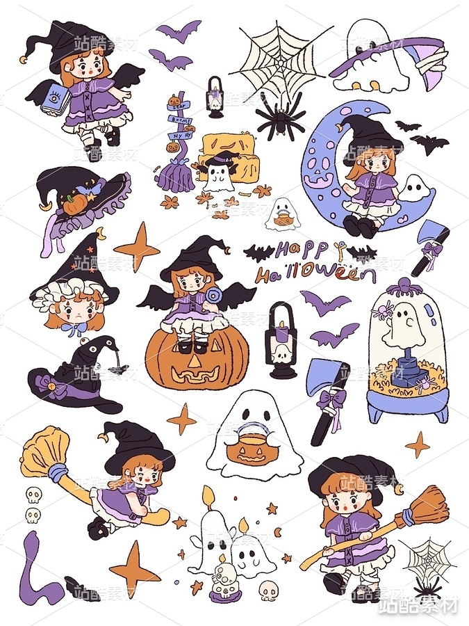 插画,20张,适用明信片印刷,图案印花,文创贴纸等
