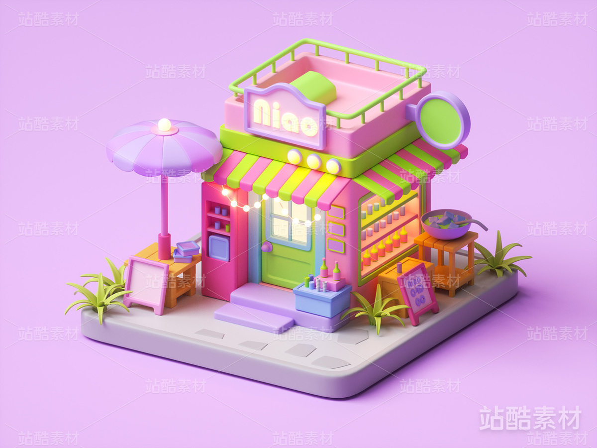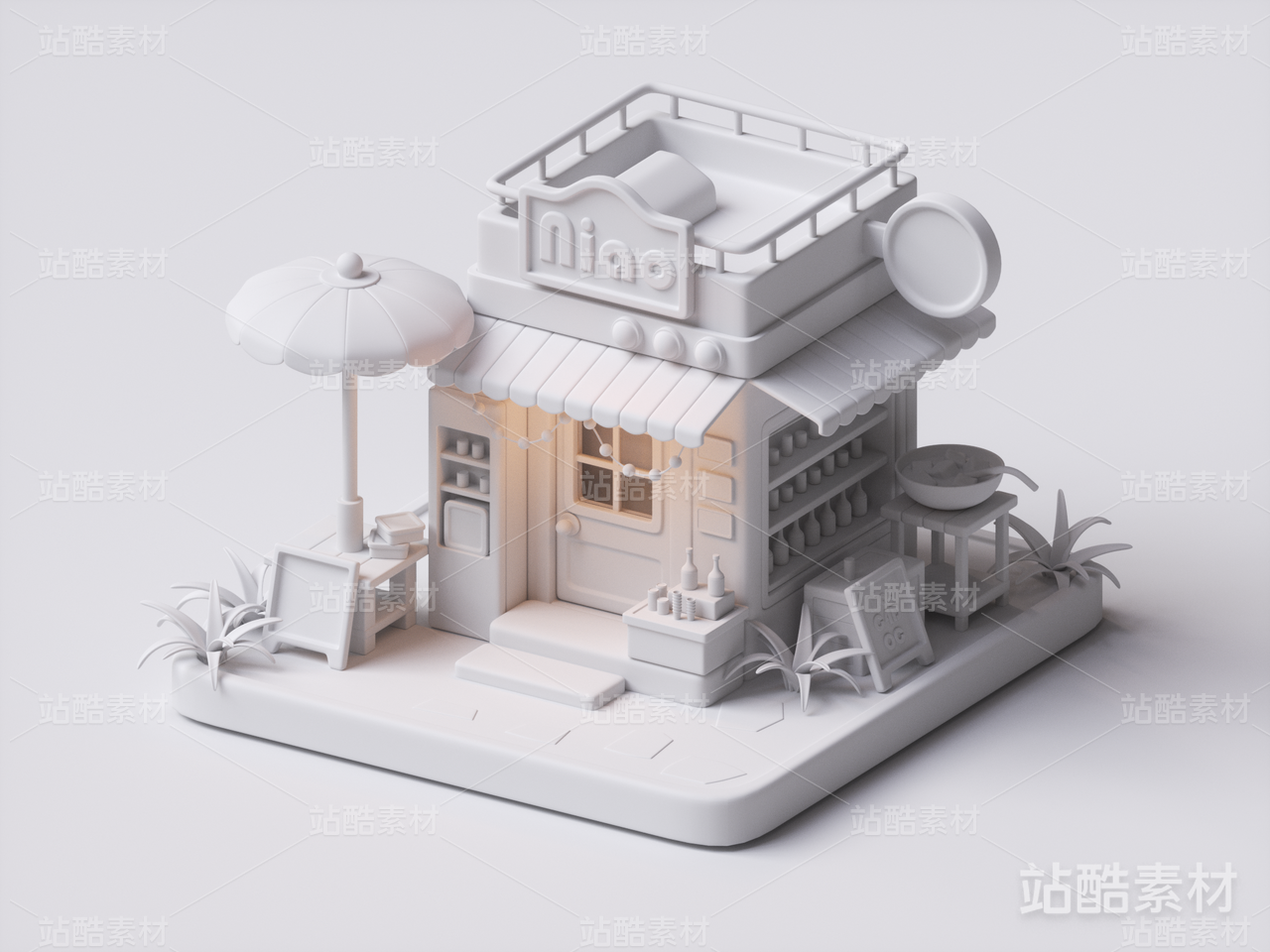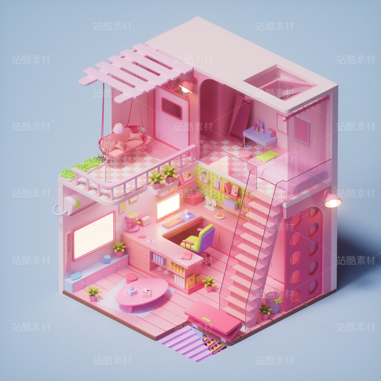 C4D粉色厨房小房间蜂巢行动-OC渲染器
