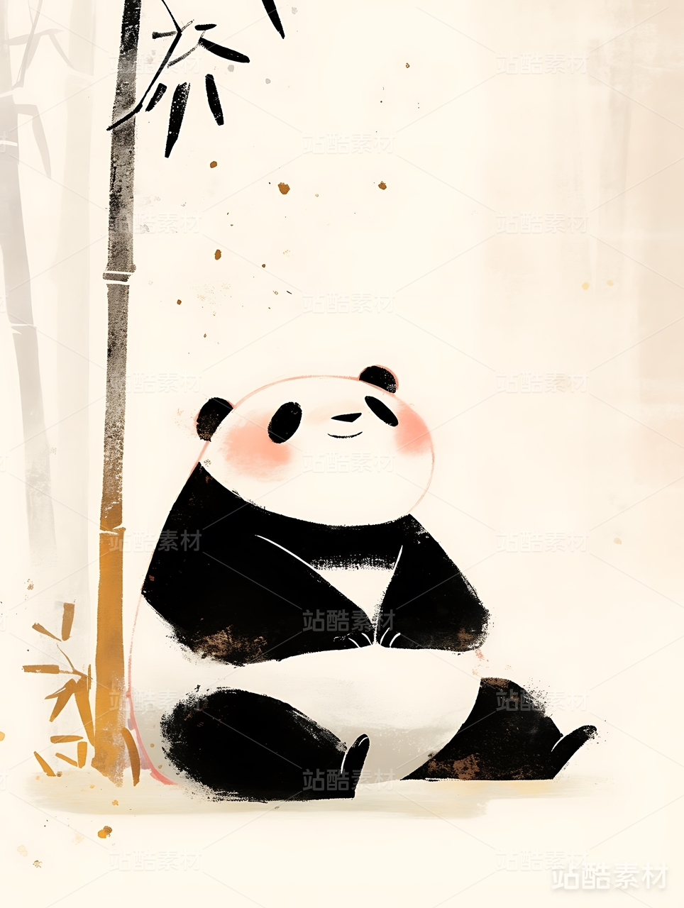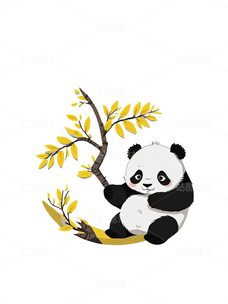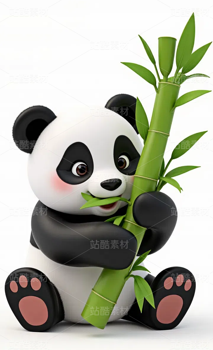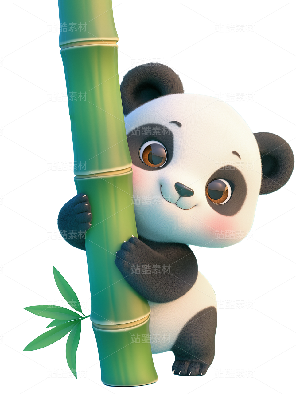 3D风格 大熊猫吃竹子地球日濒危保护动物 免抠免费海报