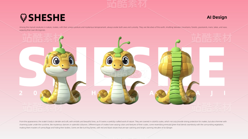 | 作品应用:可广泛应用于多种设计领域。01平面设计(服装图案打印,海报元素,宣传页元素,主kv元素,装饰印刷,贴纸,活动形象,活动物料,蛇年物料包含红包,日历,对联等宣传物料)02空间设计(活动形象,商场,美陈布局,气模等)03产品包装(农产品包装,例:对应水果)04产品(例礼盒,拖鞋,冰箱贴,手机壳,创意贴纸,抱枕,鼠标垫,马克杯等)