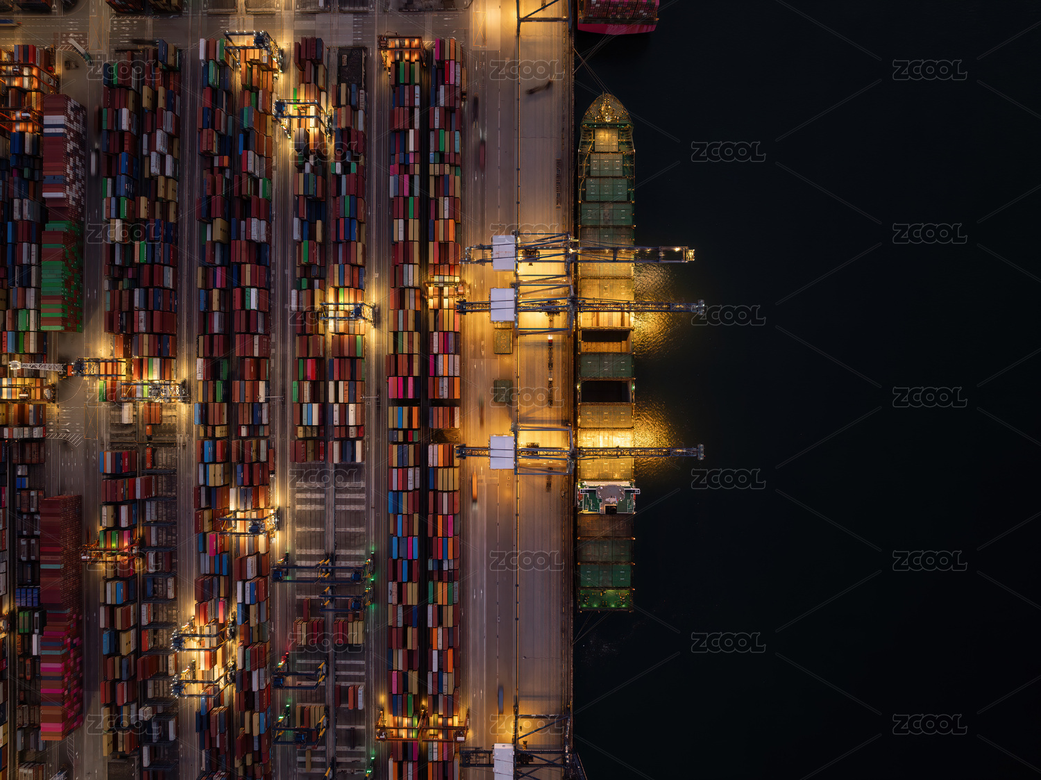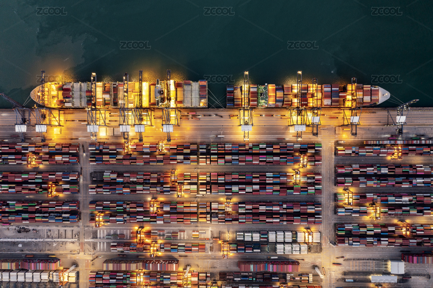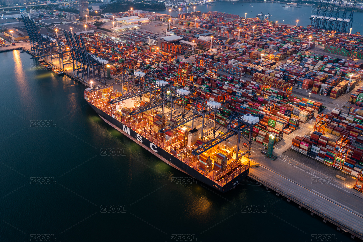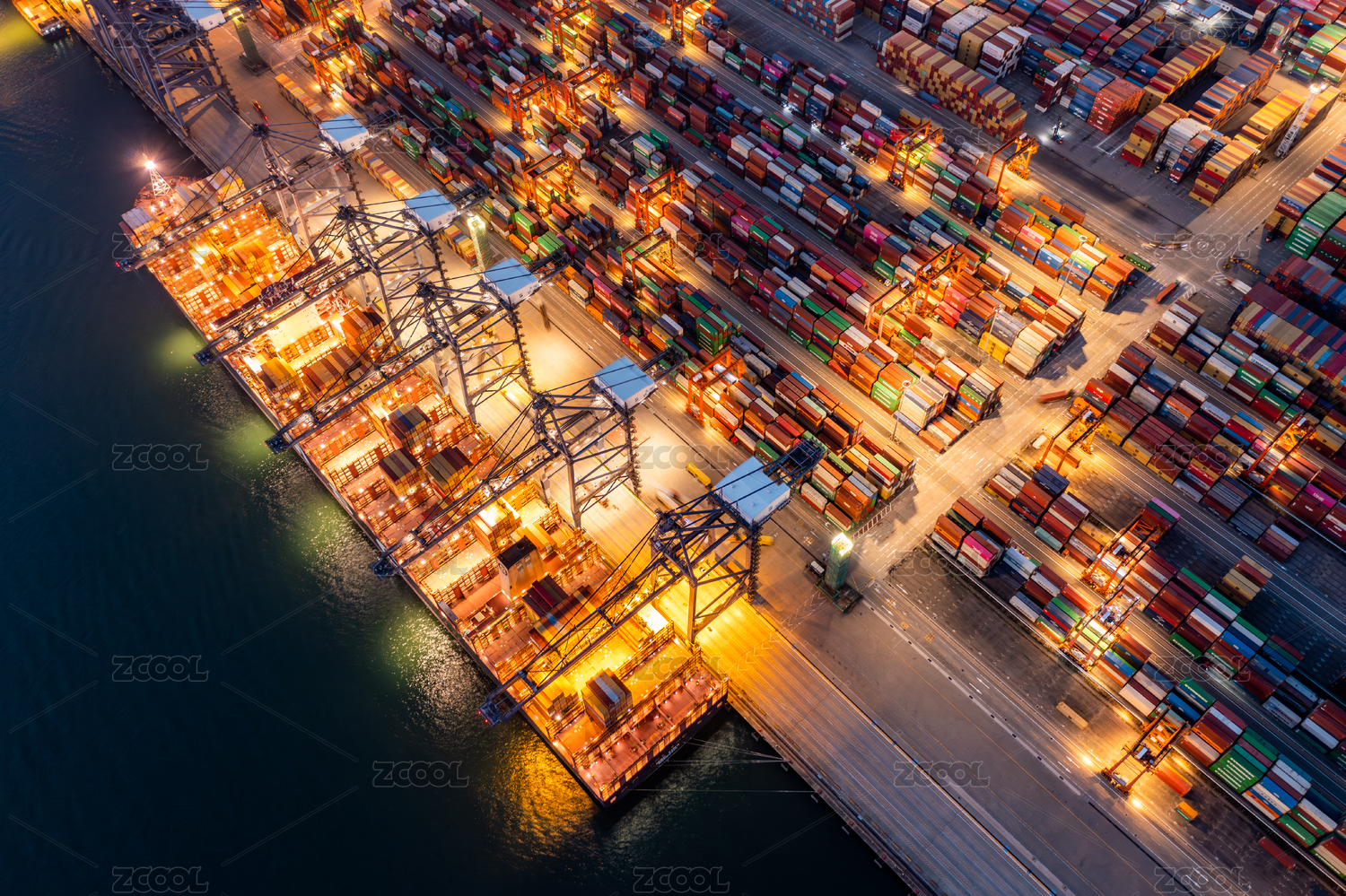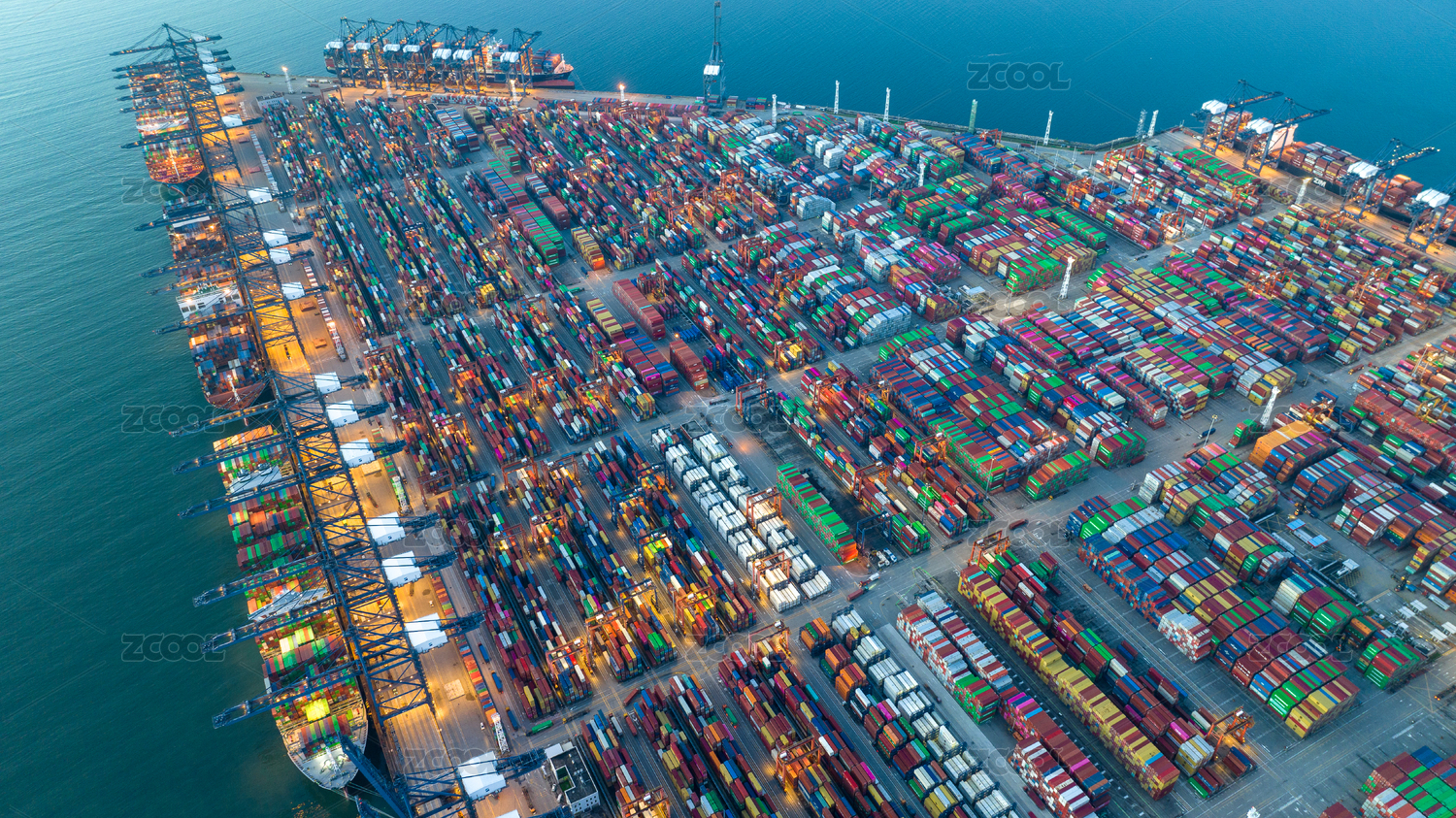 深圳盐田港繁忙港口货物集装箱夜景蓝调航拍