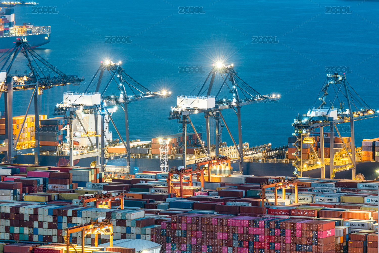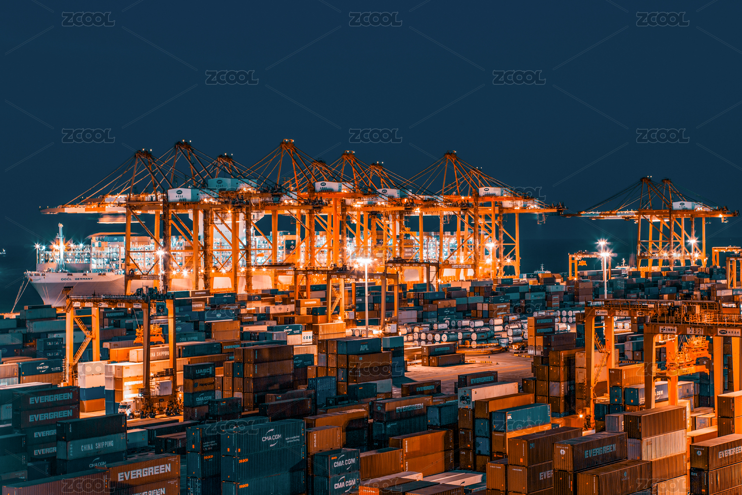 灯火璀璨的深圳南山区赤湾集装箱港码头