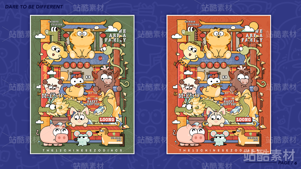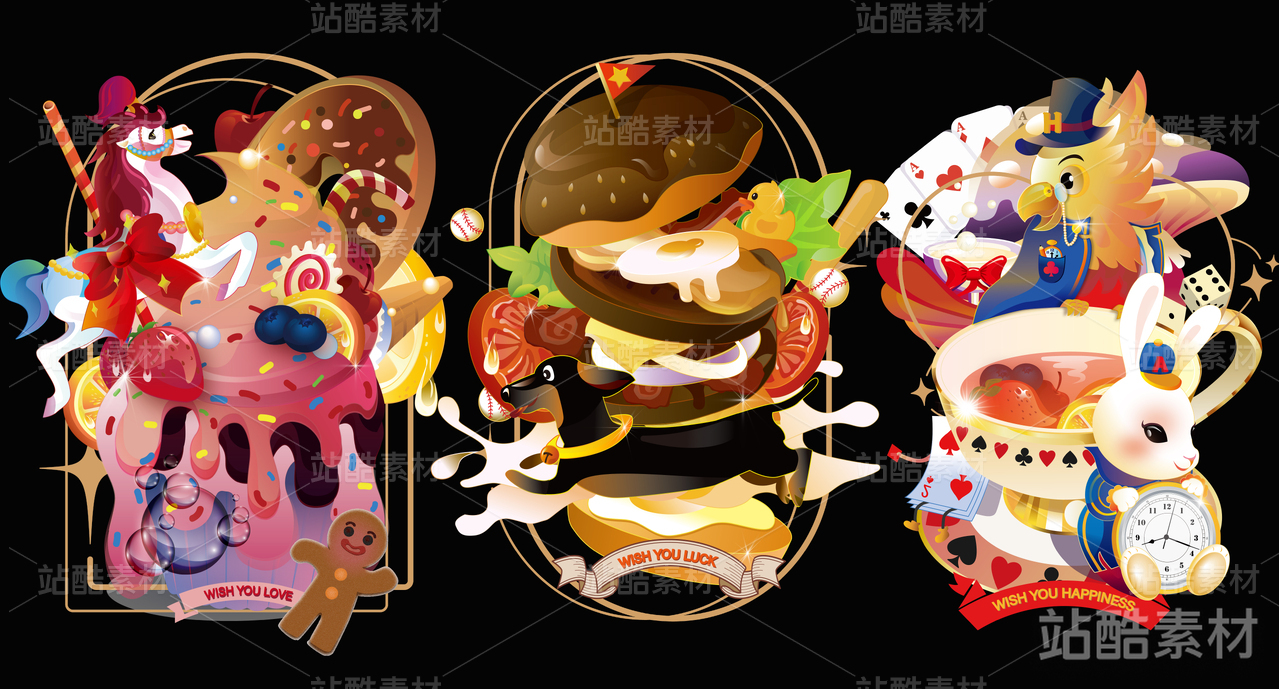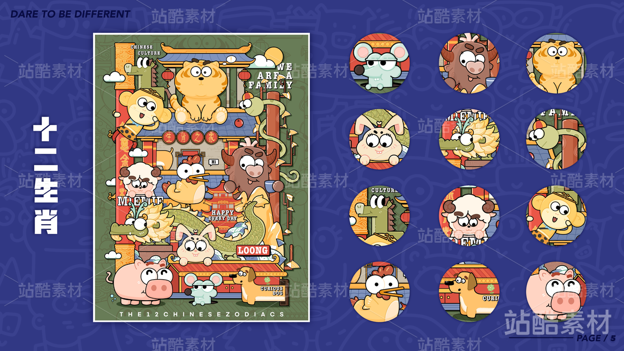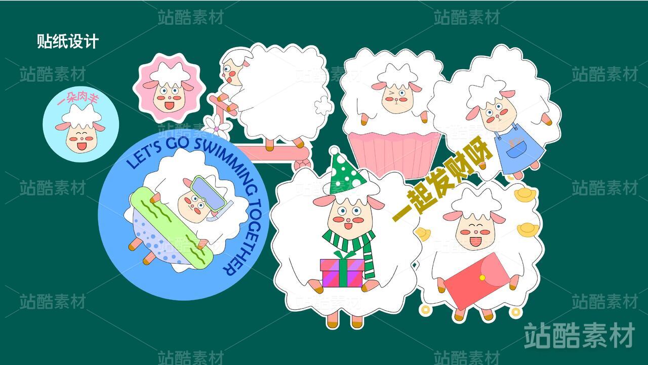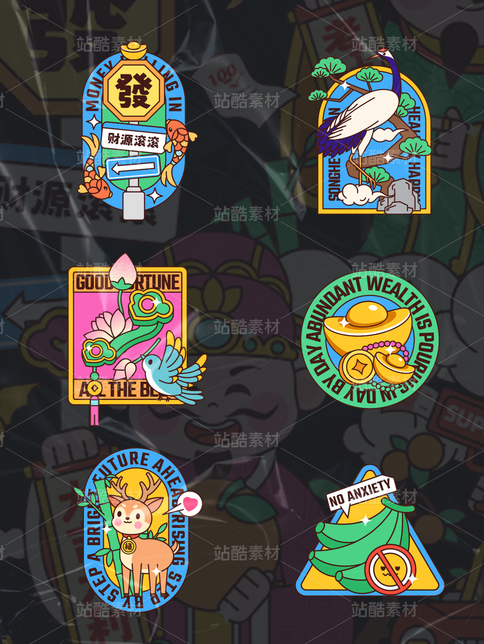 春节潮流元素矢量插画吉庆贴纸福袋红包