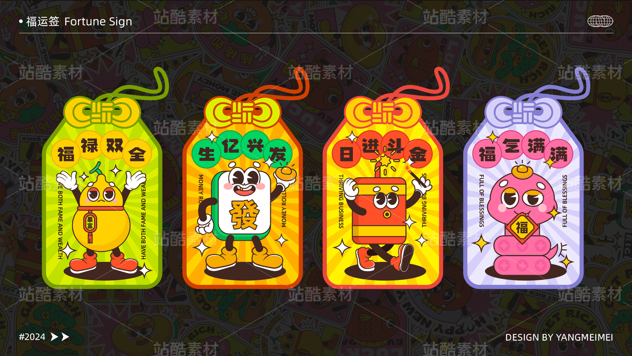 春节潮流元素矢量插画吉庆贴纸福袋红包