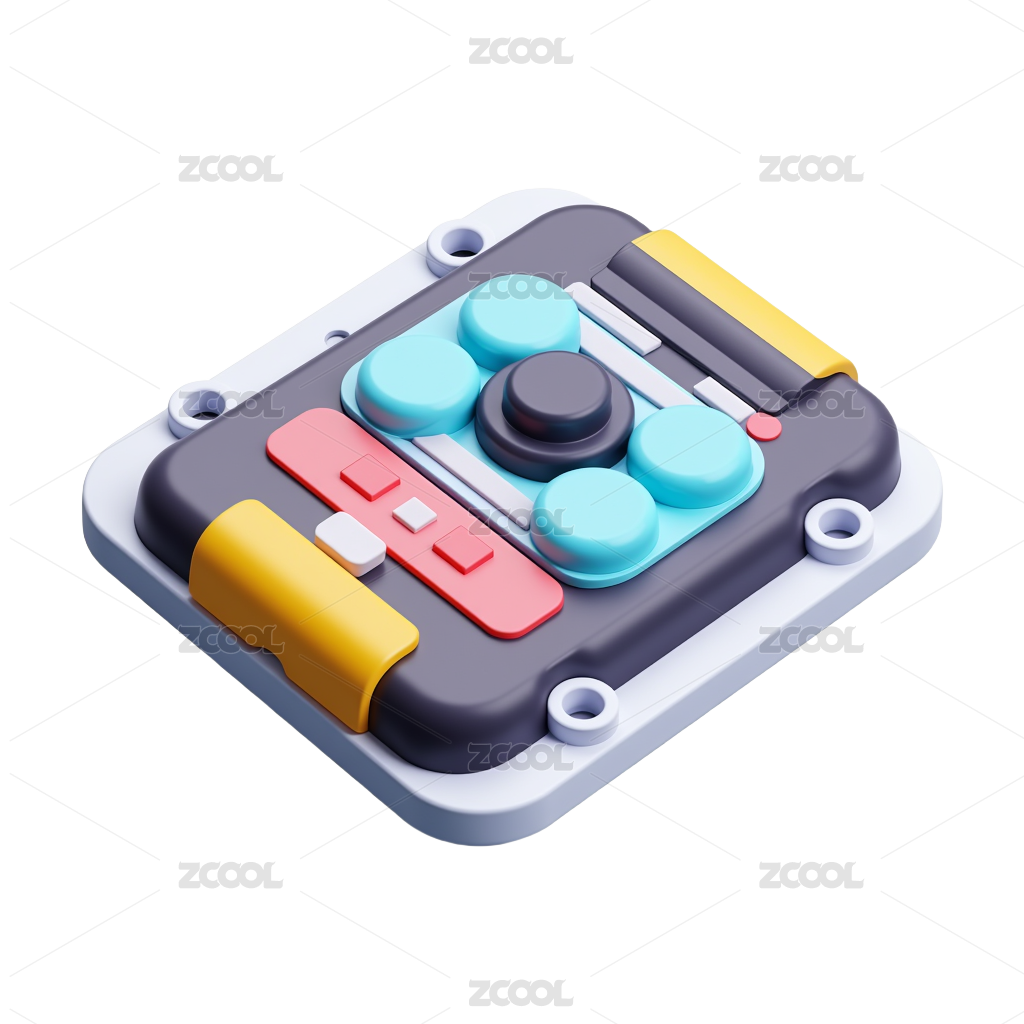 3D卡通UI界面图标可爱耳机邮箱礼物火箭麦克风游戏机透明底免扣素材