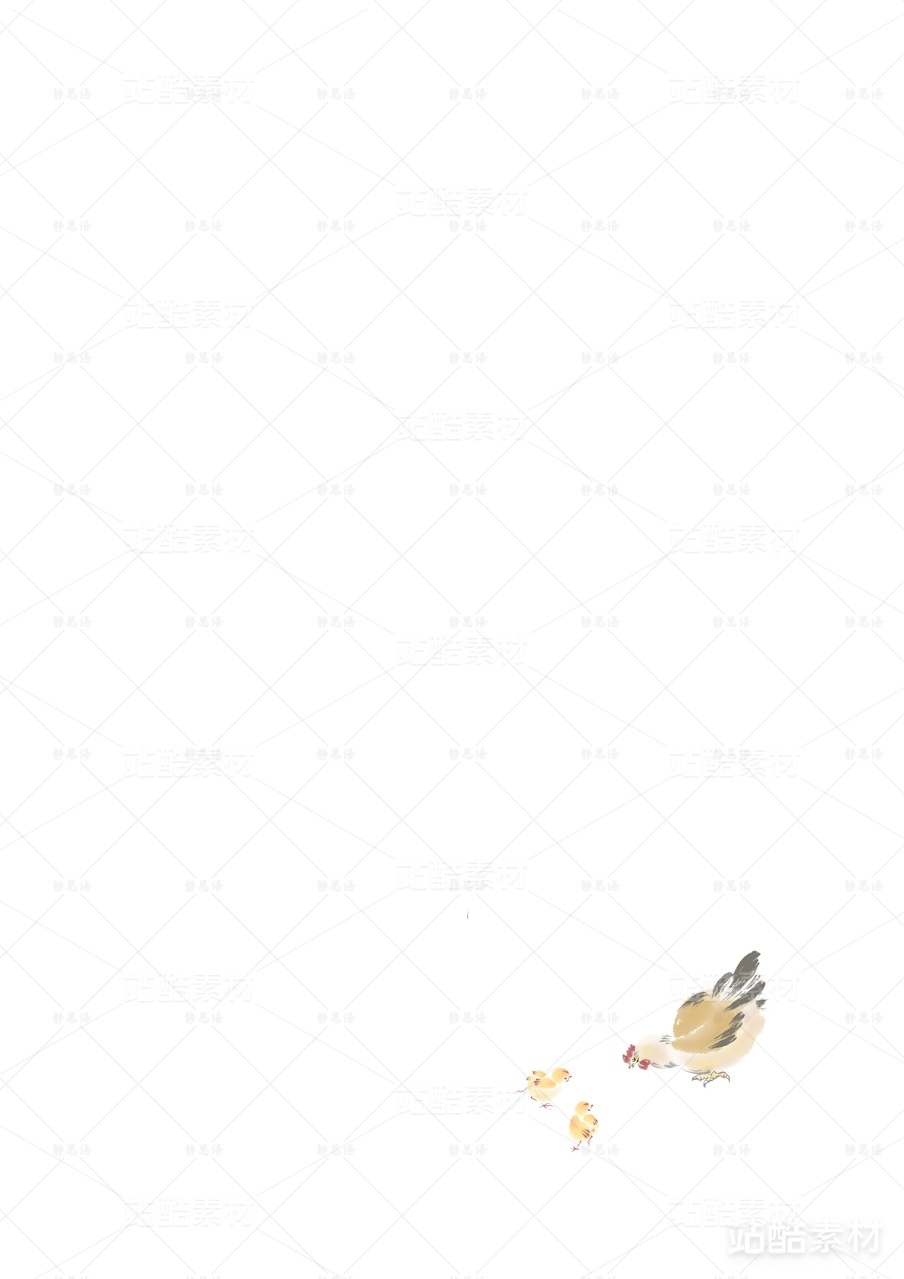 原创国风手绘水墨动物素材小鸡母鸡吃