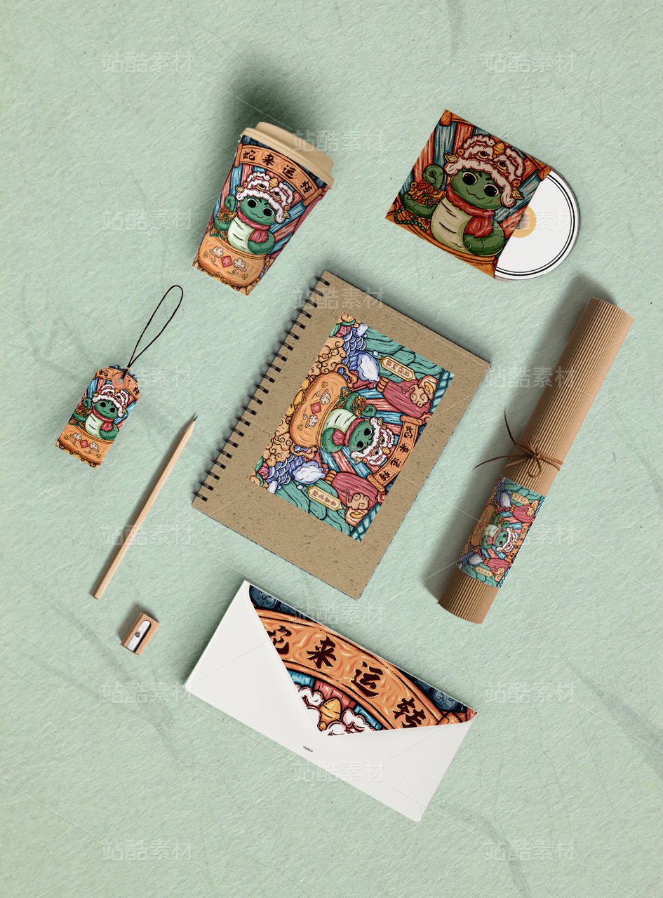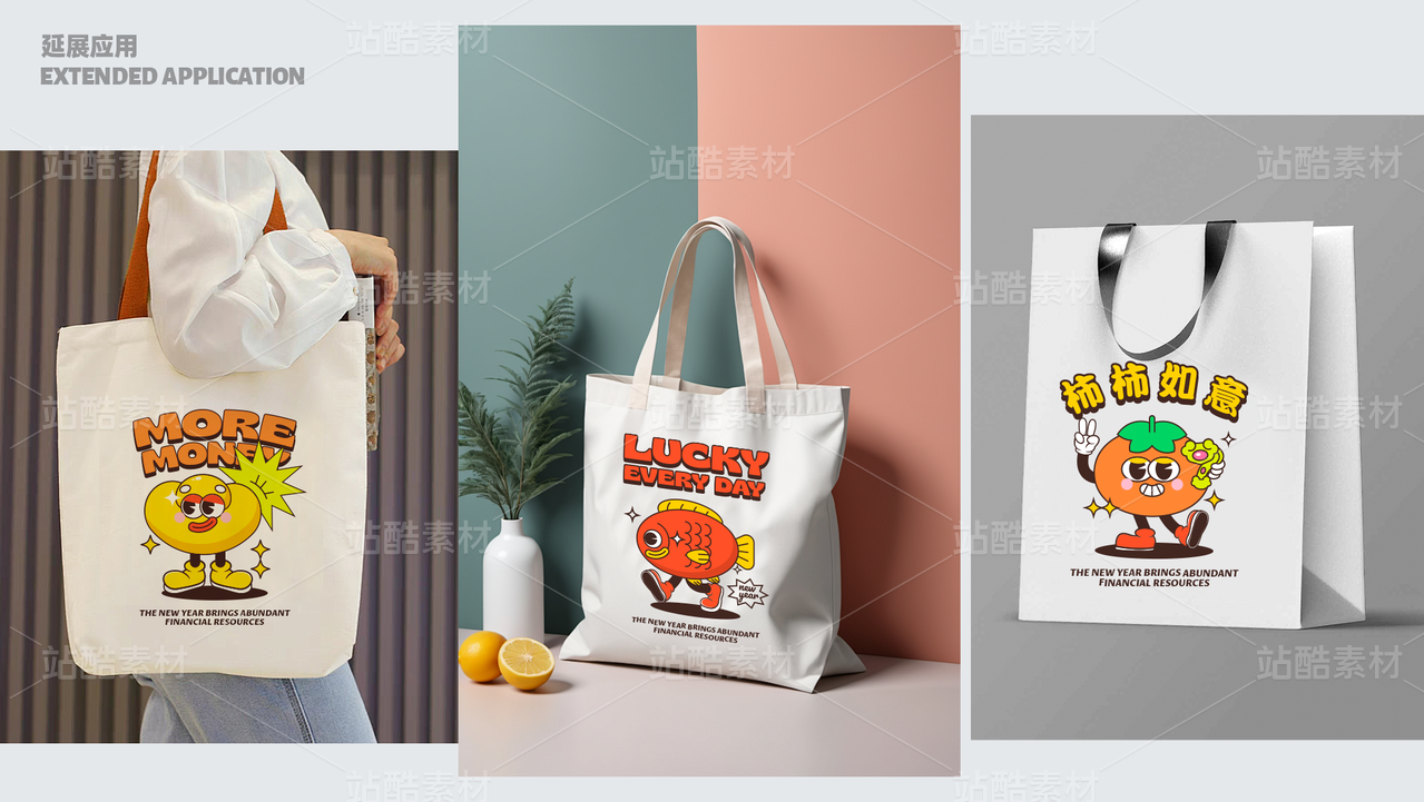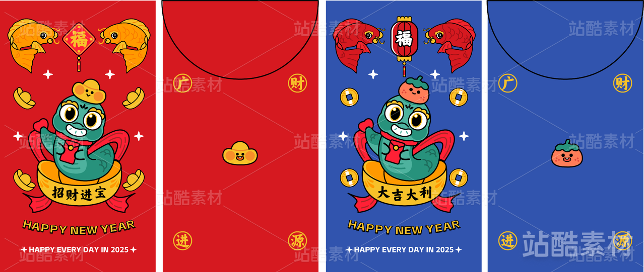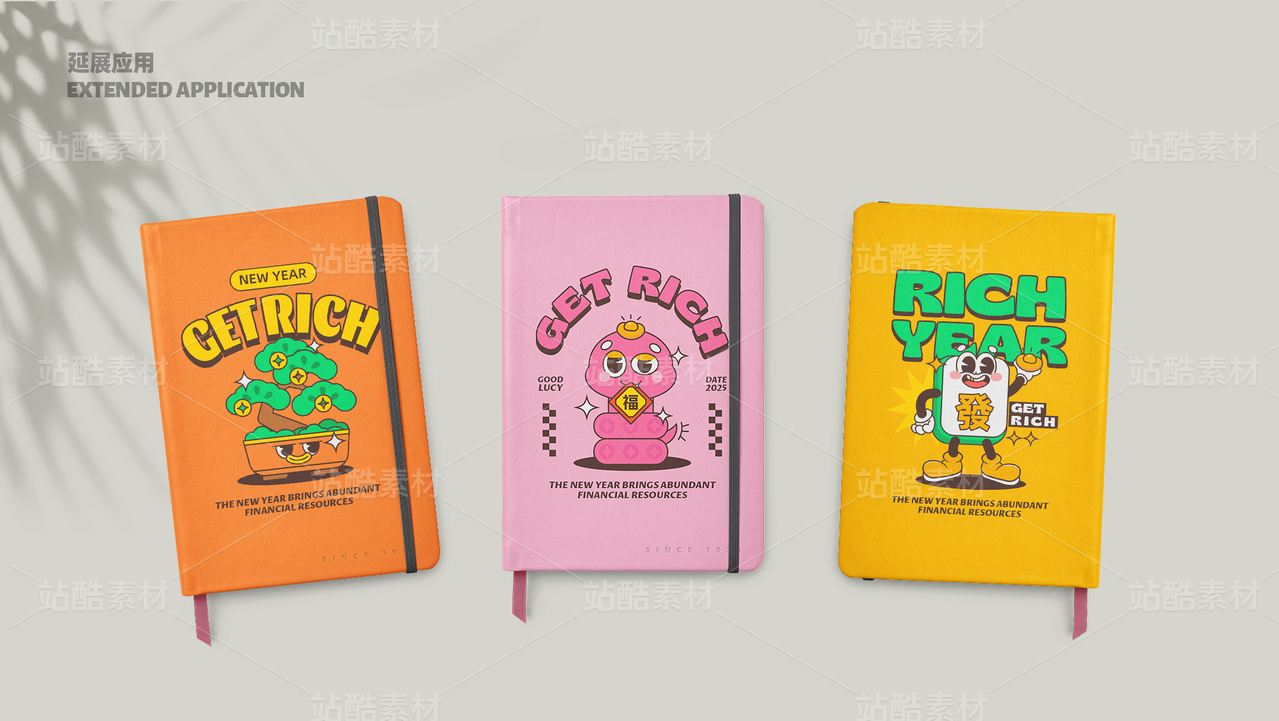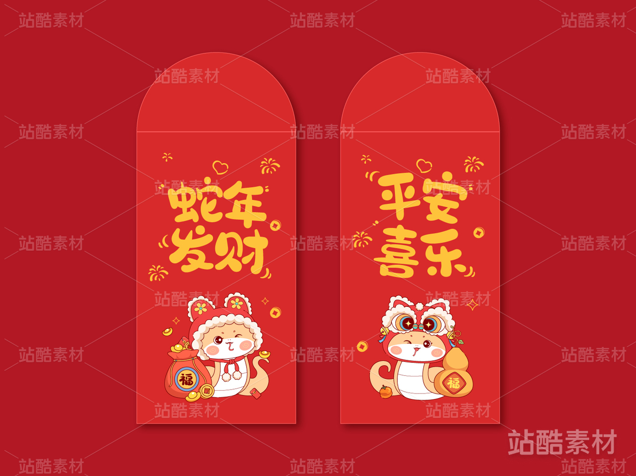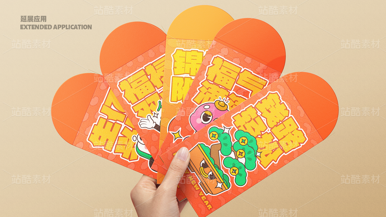春节潮流元素矢量插画吉庆贴纸福袋红包