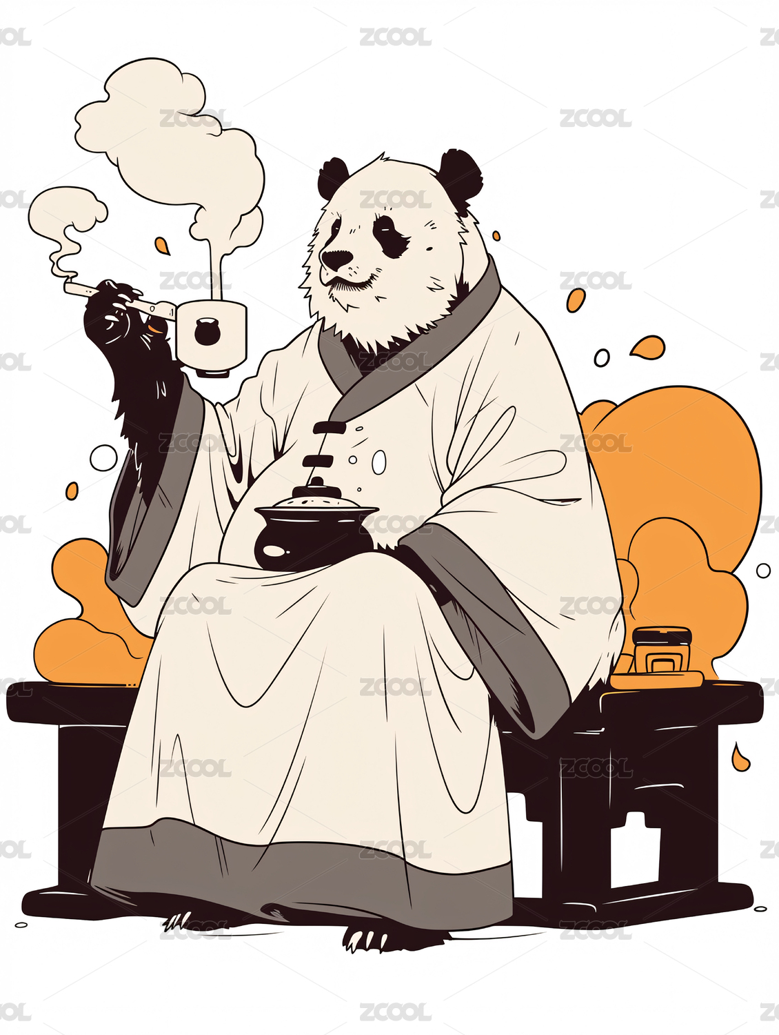 手绘卡通可爱的熊猫插画