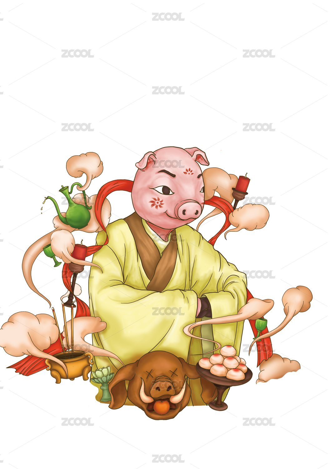 十二生肖可爱小胖猪草地奔跑岩彩画