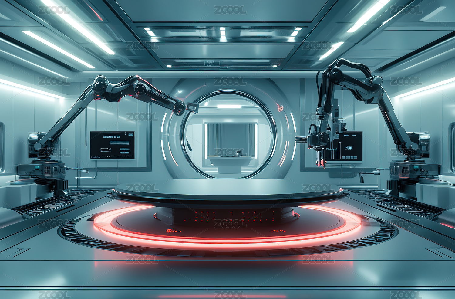 机械臂展示台空间背景3D渲染